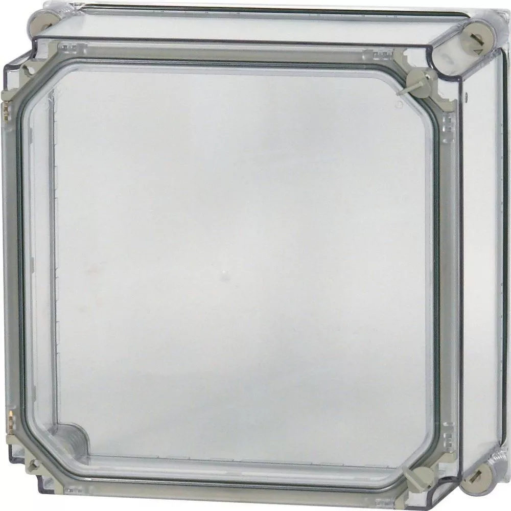 Pokrywa przezroczysta z drzwiami, stopień ochrony IP65, opatentowane zamknięcie pokrywy z wbudowanym wyrównaniem nadciśnienia, plombowane zamknięcia pokrywy, piankowa uszczelka dookoła, głębokość montażu przy płyci montażowej=250mm, zastosowanie do dolnych części CI E, X i V, wersja zamknięć drzwi: obsługa ręczna