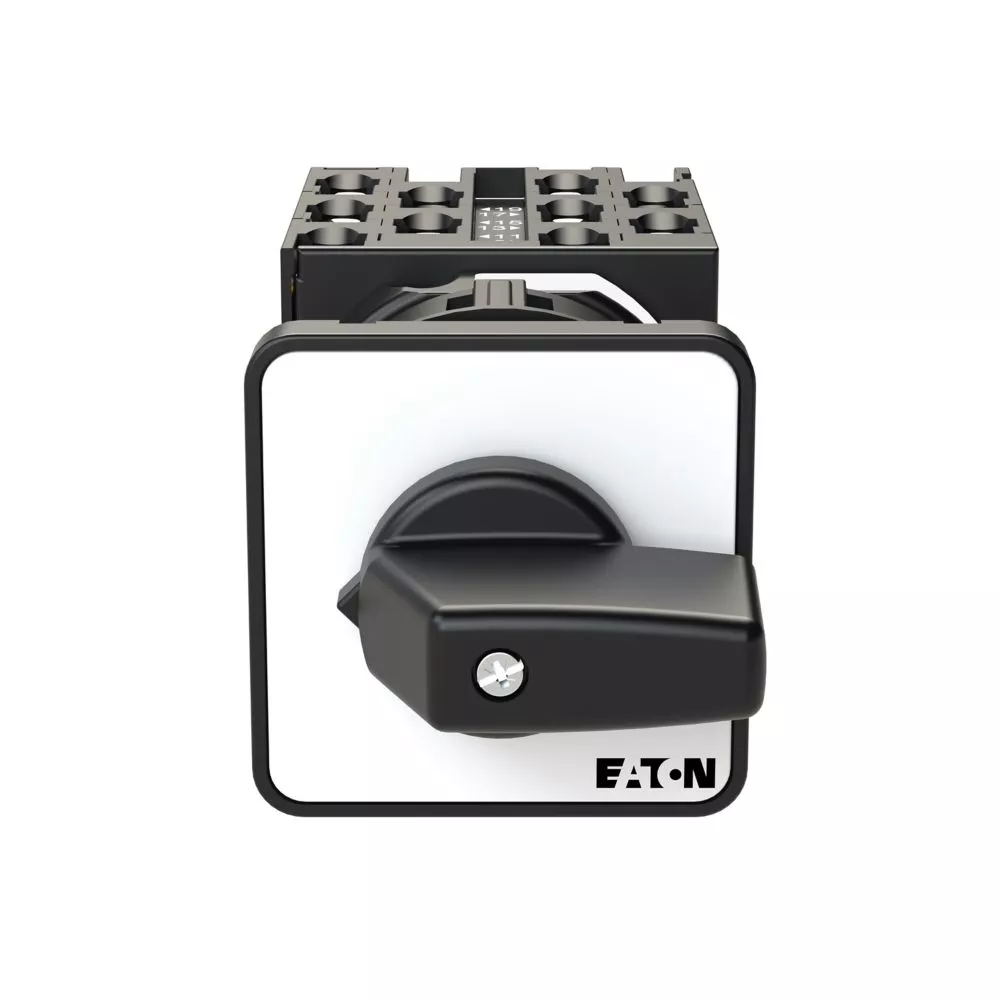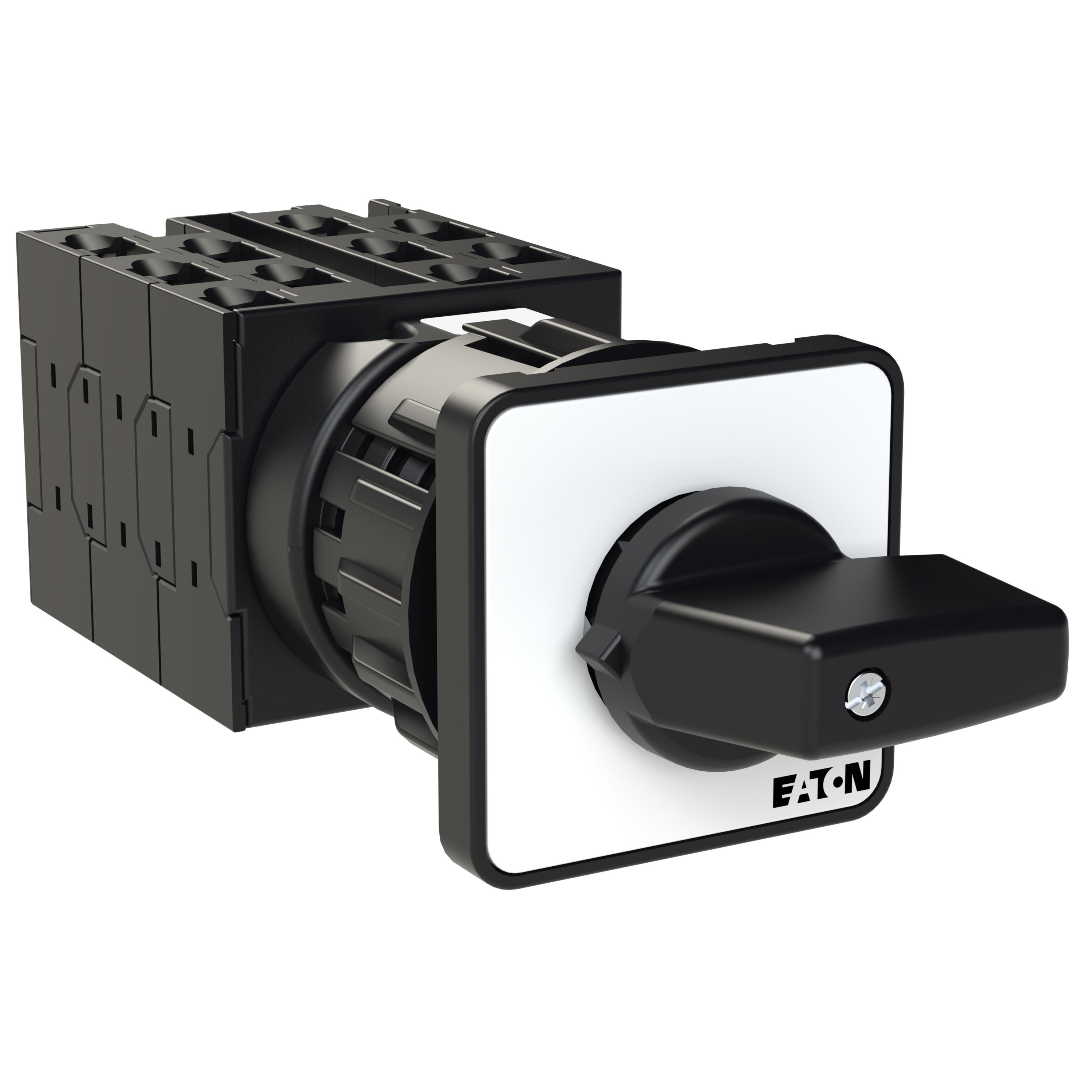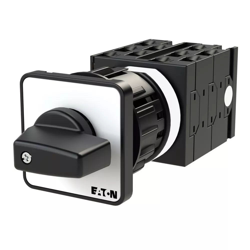 Łącznik krzywkowy wg IEC/EN60947, wielkość konstrukcyjna T0, otwór mocujący o kształcie do montażu centralnego 22,3 mm, tabliczka czołowa 48X48, klasa ochrony na przedzie IP65 z czarnym pokrętłem, pomiarowy prąd stały Iu 20A, znamionowe napięcie pracy Ue 690V, dostępne akcesoria zgodnie z danymi katalogu łączników krzywkowych T. Konstrukcja ogólna: obudowa natynkowa z izolacją, montaż, montaż centralny, montaż pośredni montaż rozdzielacza IVS.