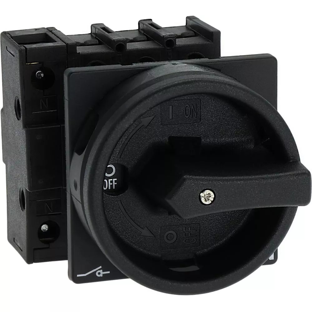 Rozłącznik główny / rozłącznik izolacyjny wł./wył. wg IEC/EN 60947-3, 690V/32A, klasa ochrony przód IP65, rękojeść czarna z wieńcem blokującym czarnym, zamykanie 3 kłódkami, rozłączniki izolacyjne P1 mają niewielkie wymiary i solidną konstrukcję. Napęd ręczny działa bezpośrednio na zestyki. Zestyki po wyłączeniu rozwierają się w sposób wymuszony.. Ogólne konstrukcje: obudowa natynkowa z izolacją, montaż, montaż centralny, montaż pośredni, montaż rozdzielacza IVS