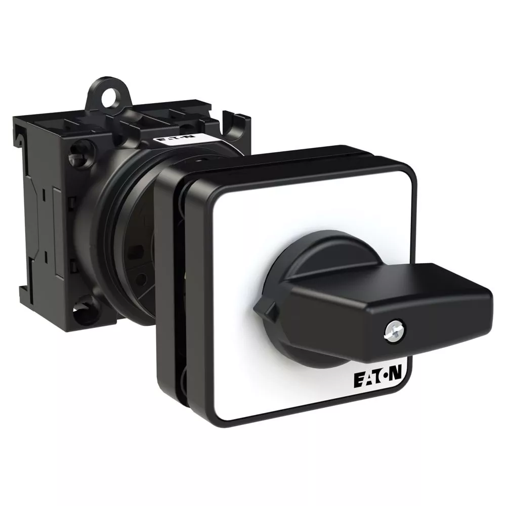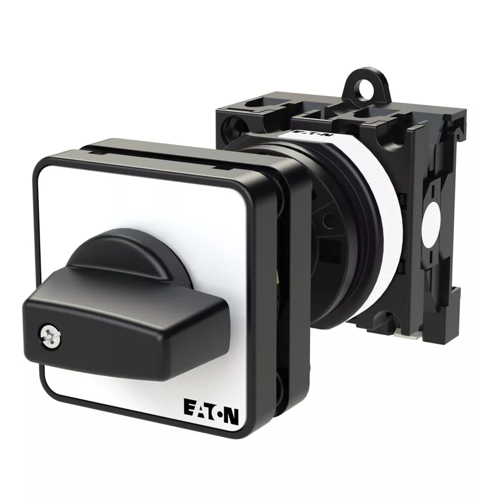 Łącznik krzywkowy wg IEC/EN60947, wielkość konstrukcyjna T0, konstrukcja pośrednia, mocowanie przykręcane zatrzaskowe, napęd sprzęgowy drzwi i pokrywy, tabliczka czołowa 48X48, klasa ochrony na przedzie IP65 z czarnym pokrętłem, pomiarowy prąd stały Iu 20A, znamionowe napięcie pracy Ue 690V, dostępne akcesoria zgodnie z danymi katalogu łączników krzywkowych T. Konstrukcja ogólna: obudowa natynkowa z izolacją, montaż, montaż centralny, montaż pośredni montaż rozdzielacza IVS.