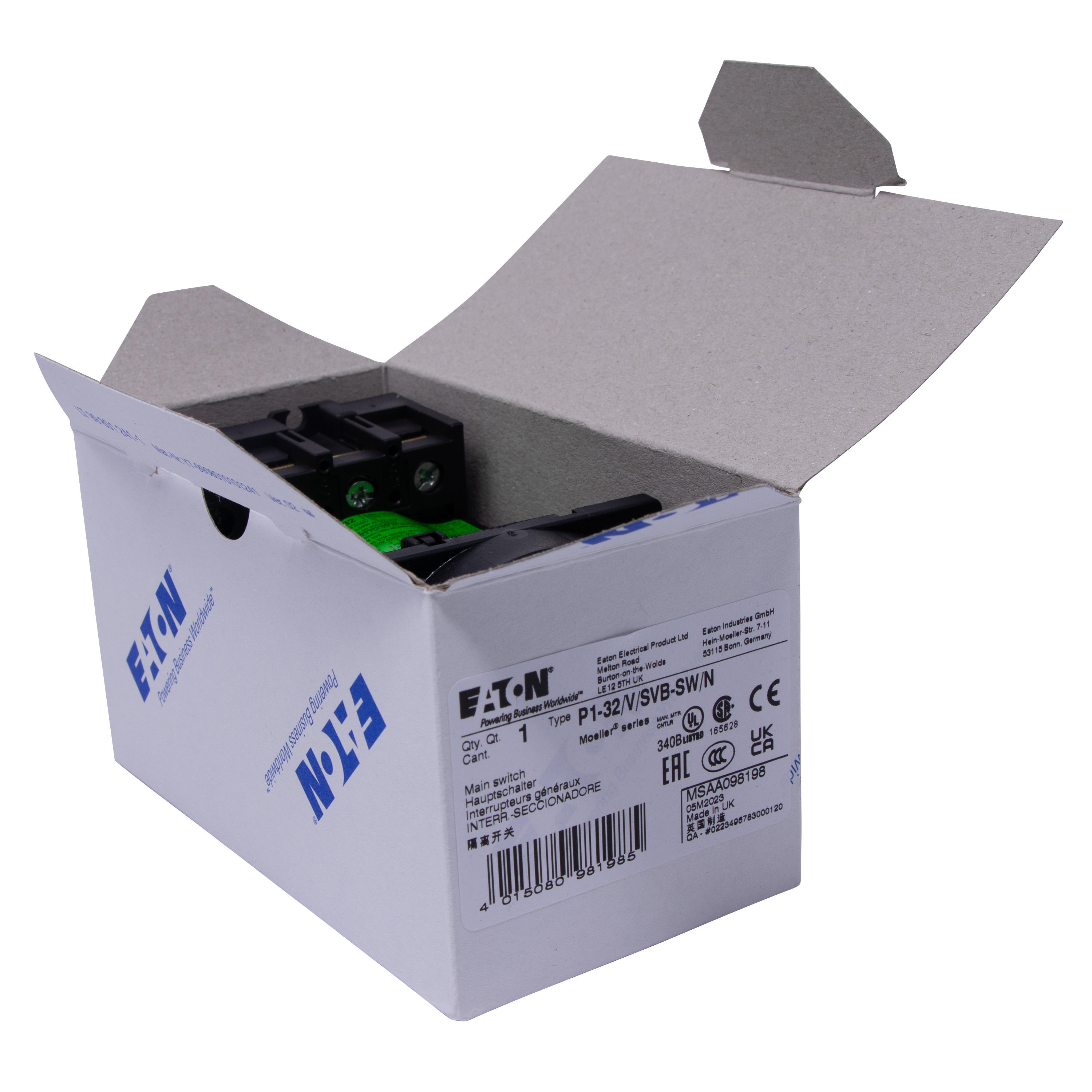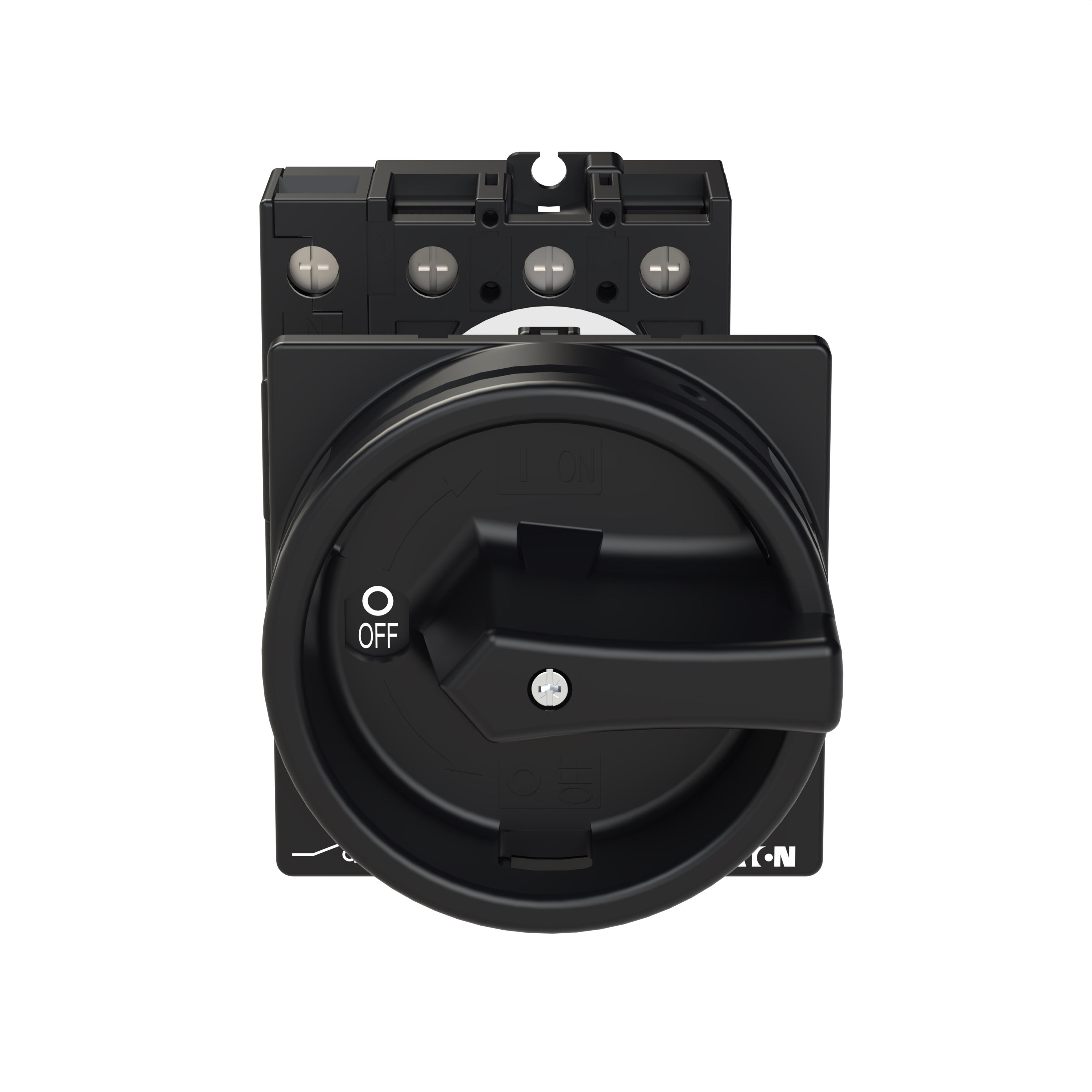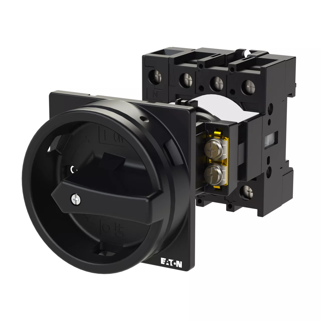 P1-32/V/SVB-SW/N Rozłącznik główny, 3 bieg. + N, 32 A, funkcja awaryjnego zatrzymania , blok. na kłódkę w pozycji Wył., montaż rozłączny, pokrętło czarne z blokadą na kłódkę