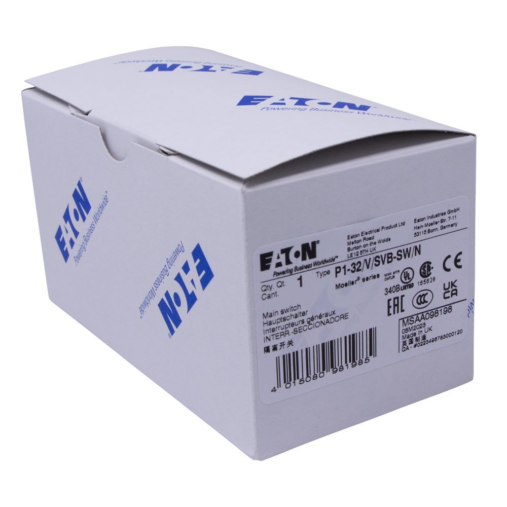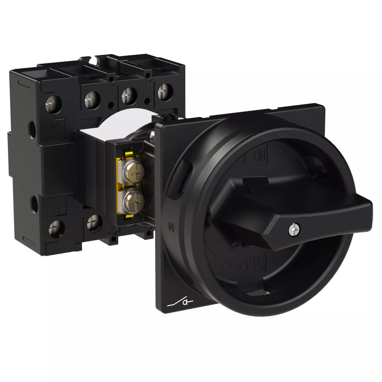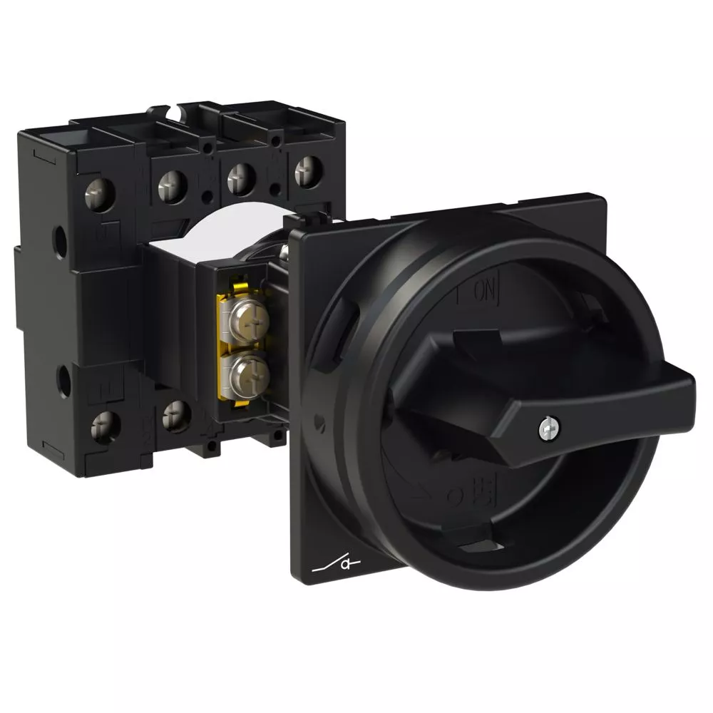 P1-32/V/SVB-SW/N Rozłącznik główny, 3 bieg. + N, 32 A, funkcja awaryjnego zatrzymania , blok. na kłódkę w pozycji Wył., montaż rozłączny, pokrętło czarne z blokadą na kłódkę