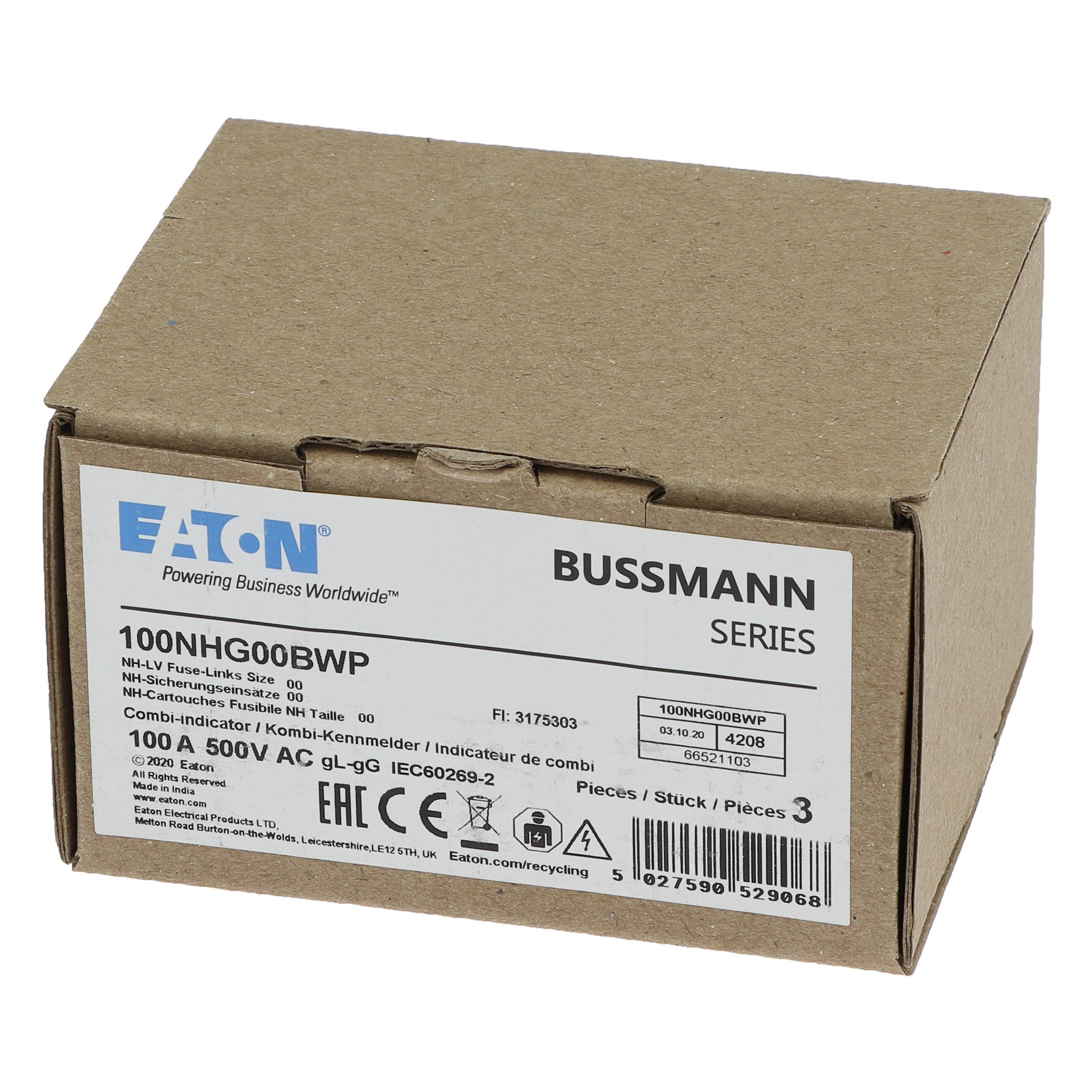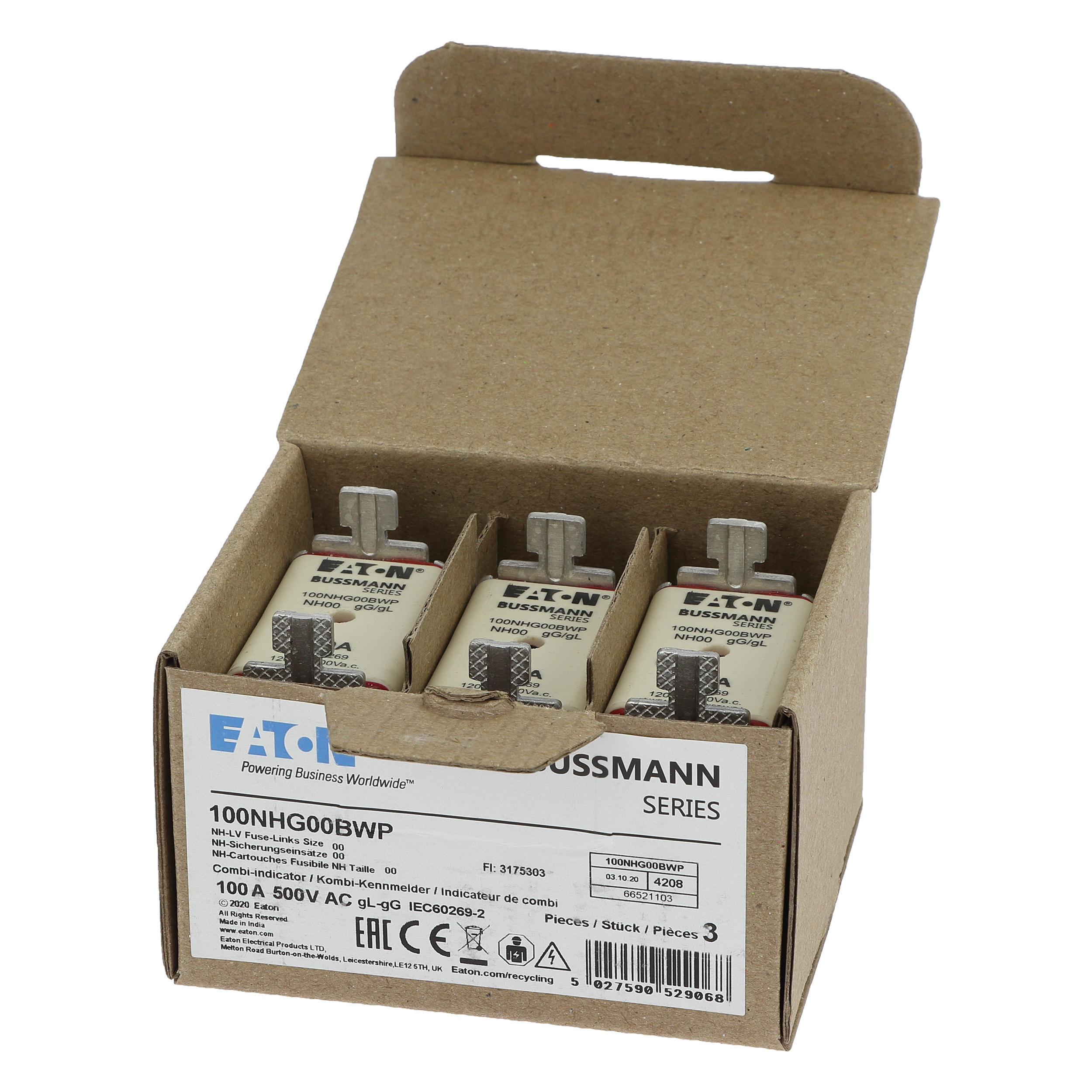 100NHG00BWP NH, LV, 100A, 500V gG rozmiar 00, WR
