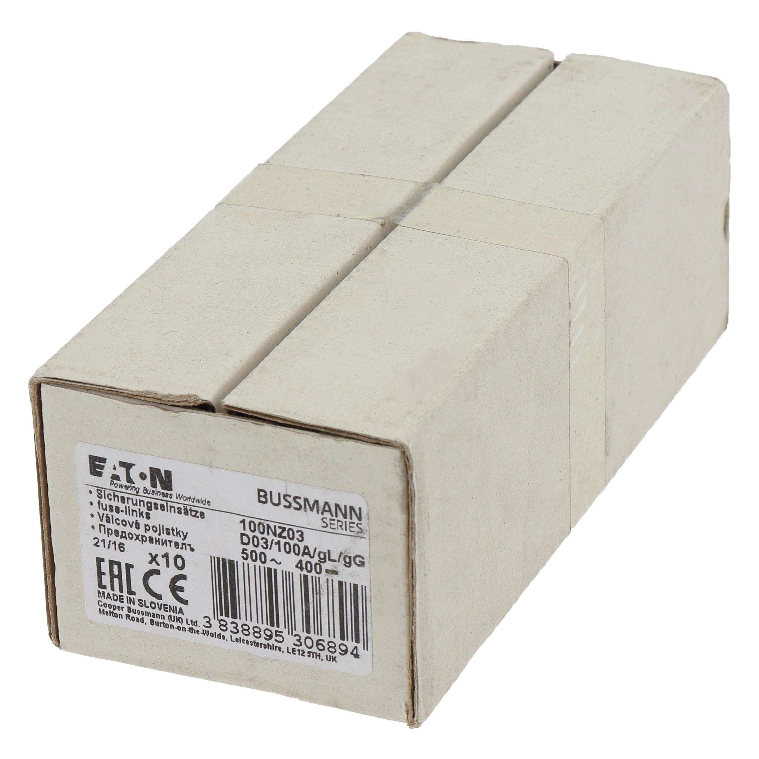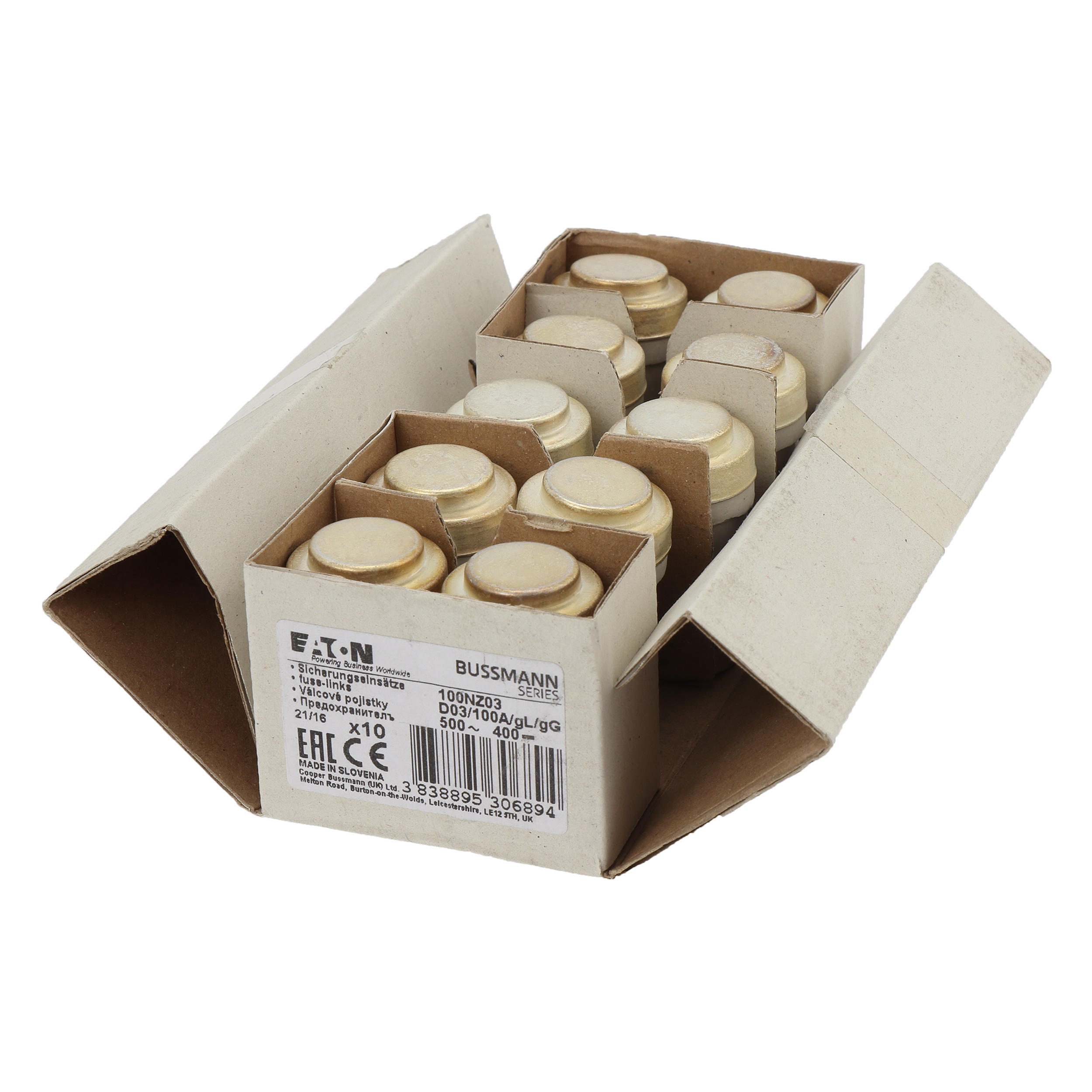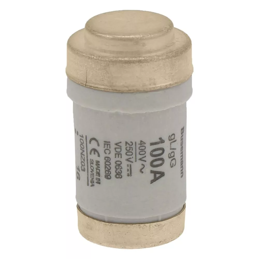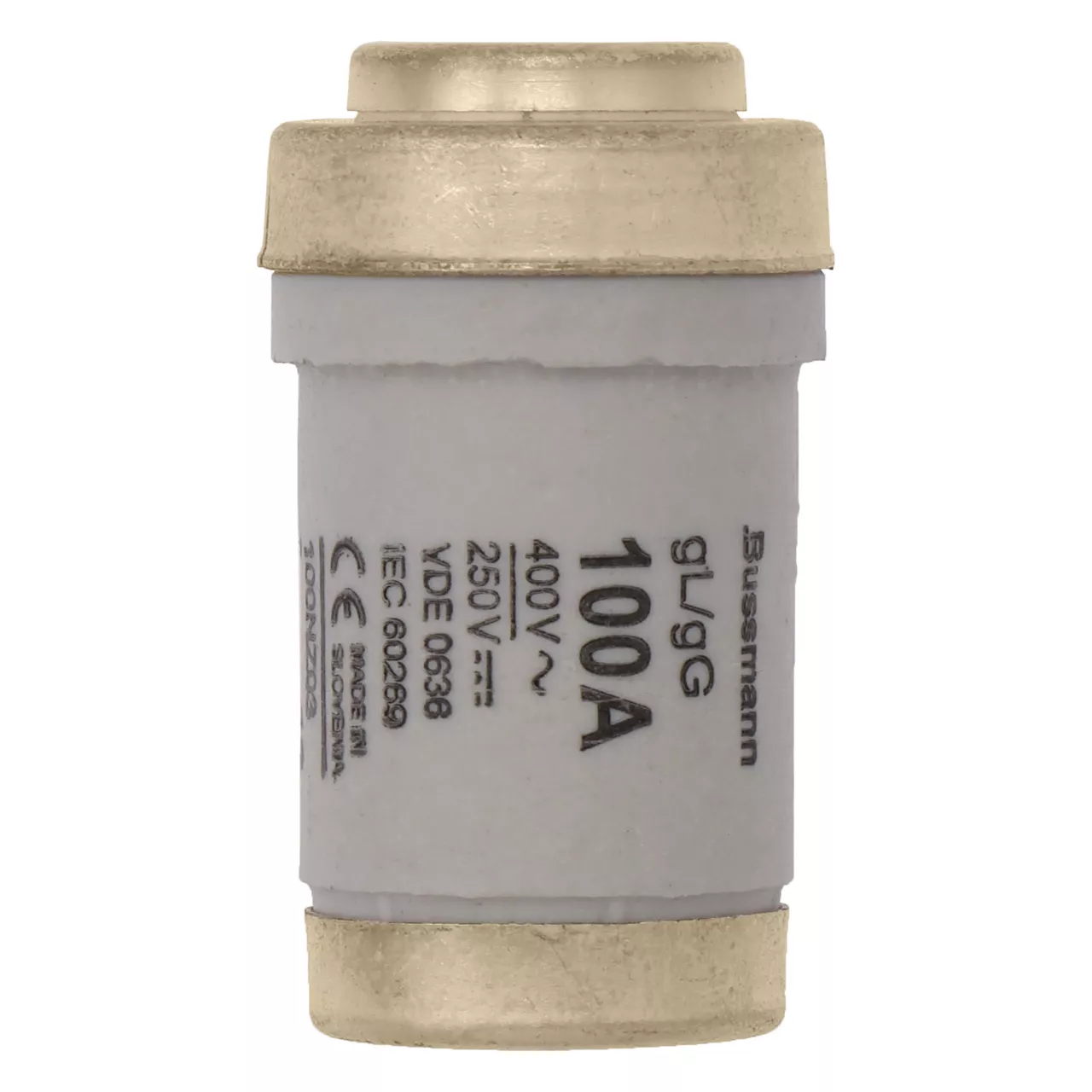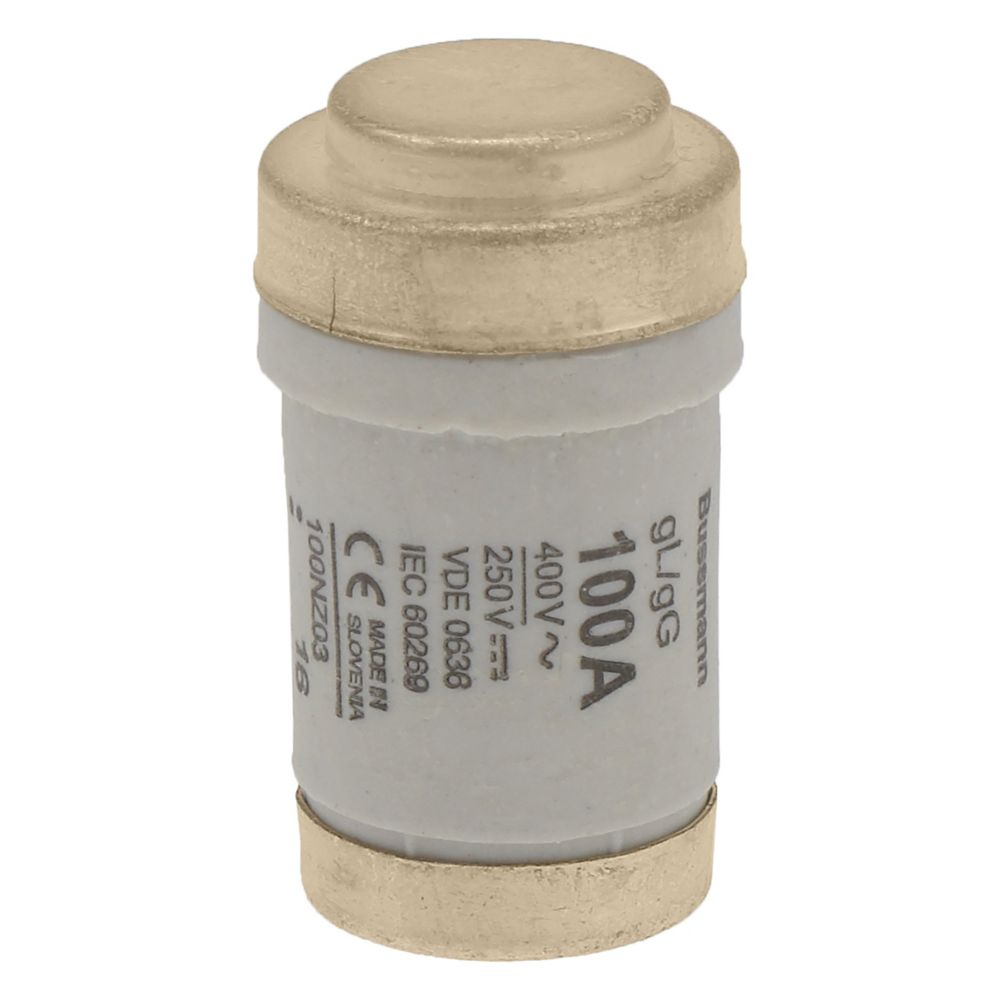 Zekering, zekeringelement, laagspanning, 100 A, AC 400 V, D03, gL/gG, IEC, traag, voor zekeringhouder M30, voor huishoudelijke en algemeen industriële toepassingen, IEC 60269-3, VDE 0636