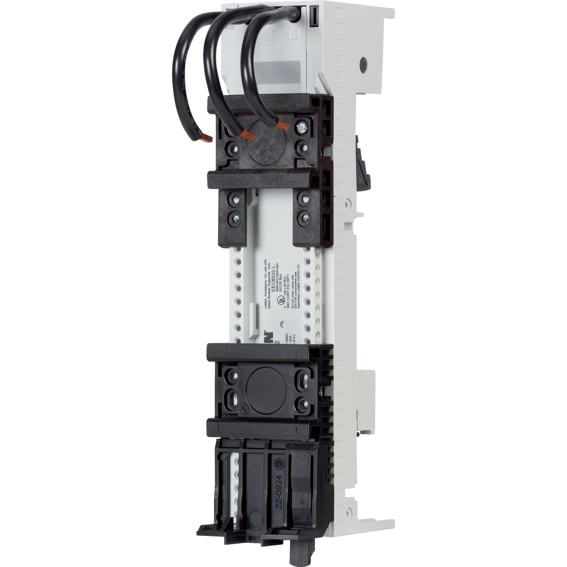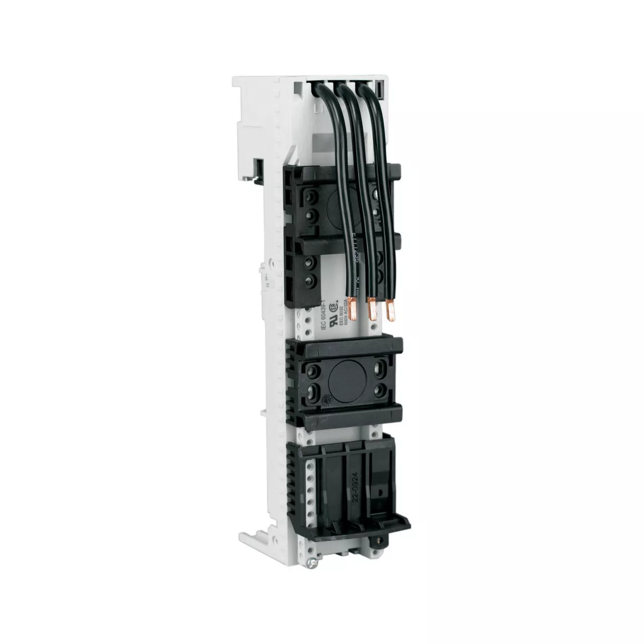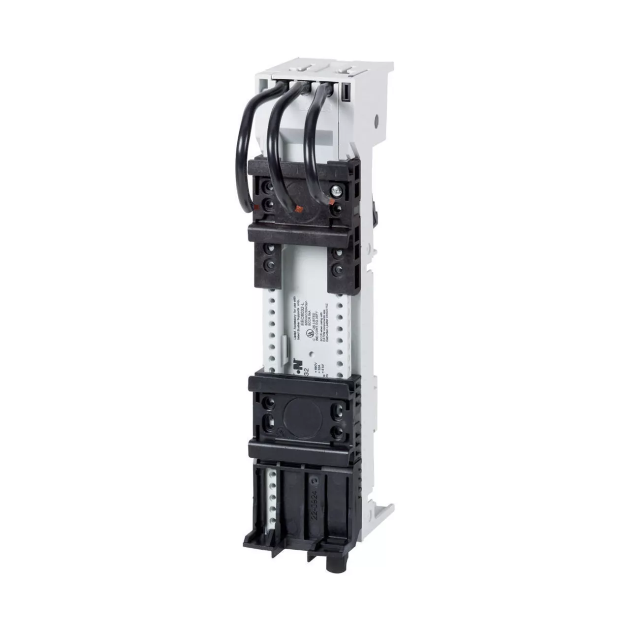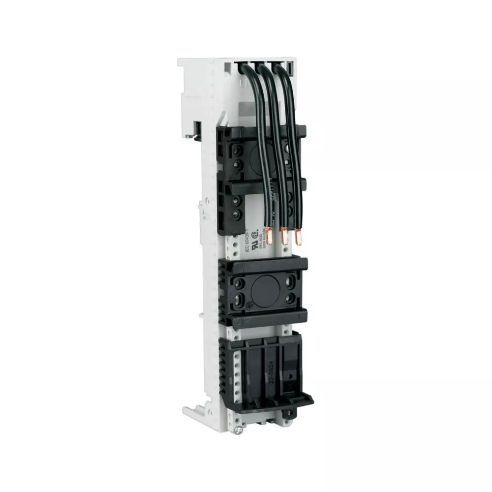 45 mm adapter na szyny zbiorcze do systemu szyn zbiorczych 60 mm, dwie szyny montażowe, trzy prefabrykowane przewody (AWG10/6 milimetrów kwadratowych) do podłączenia urządzenia przełączającego, oże być używany do wyłącznika silnikowego PKZM0, PKE z rozrusznikiem bezpośrednim/MSC-D(E)(A) ze stycznikiem DILM17 do DILM32, znamionowy prąd roboczy: 32 A