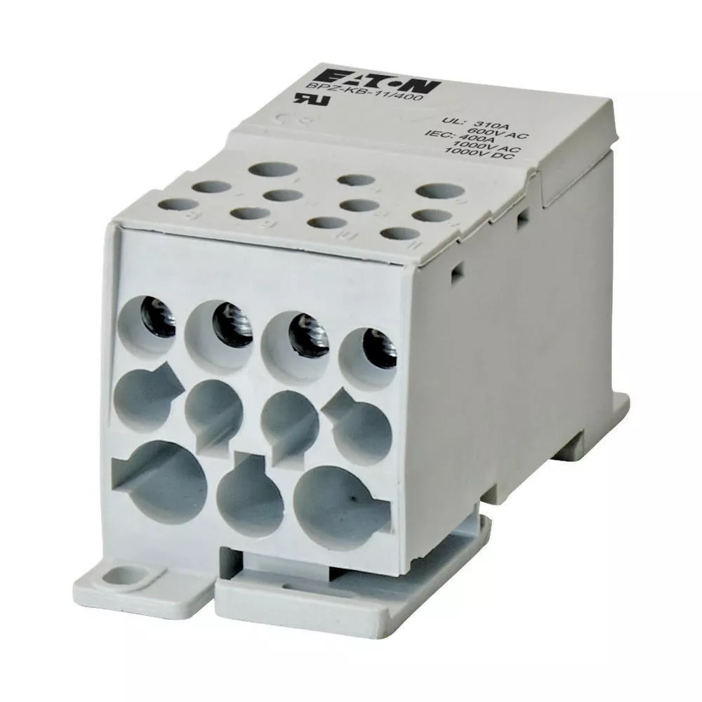 1-poliger Klemmblock, BPZ-KB, Bemessungsbetriebsstrom 400 A, für Kupferleiter. Montage an DIN-Hutschiene oder Montageplatte, UL-gelistet, macht die Verdrahtung weniger zeitaufwändig, ca. 80 % weniger Platz erforderlich.Moduldesign, 1- bis 4-polige Systeme können über mehrere Blöcke montiert werden. Schutzart IP10, max. Betriebsspannung 1.000 VAC, 1.500 VDC. im Lieferumfang enthalten: 1x 1-poliger Klemmenblock