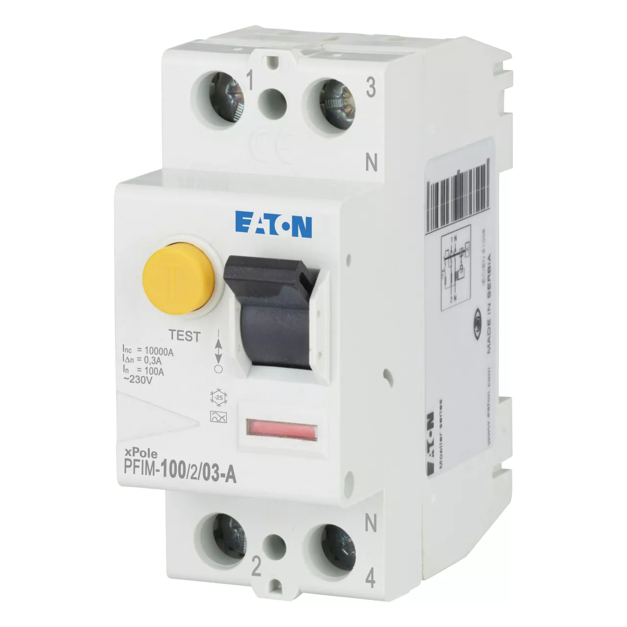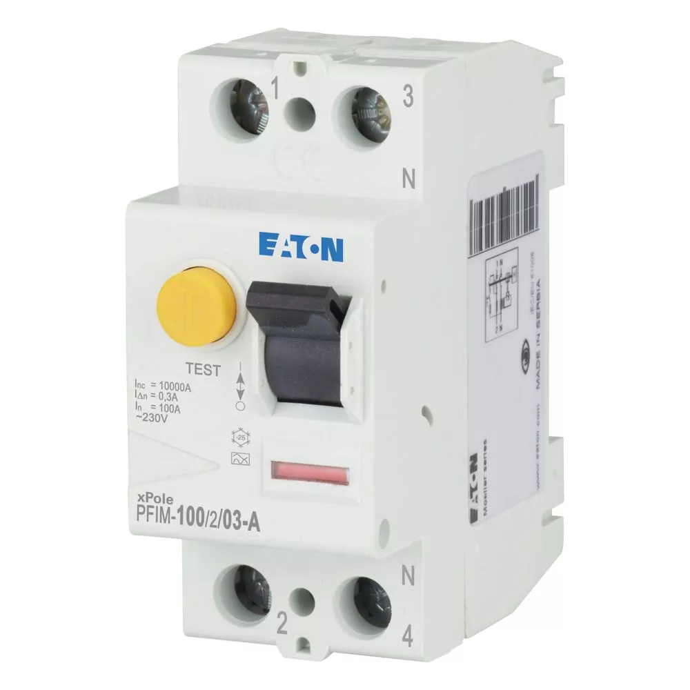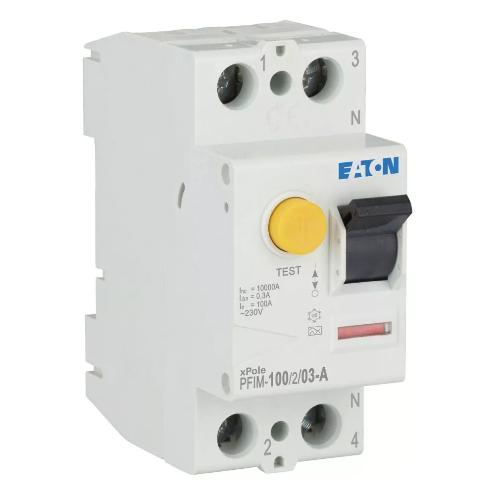 Fehlerstrom-Schutzschalter PFIM, 2-polig, Bemessungsstrom Ein: 100 A, Bemessungskurzschlussfestigkeit Icn: 10 kA, Bemessungsfehlerstrom IΔN: 0,3 A, Schaltgeräte für den Wohnungsbereich und kommerzielle Anwendungen