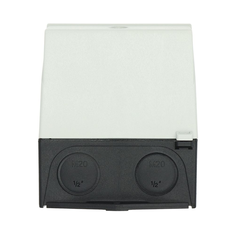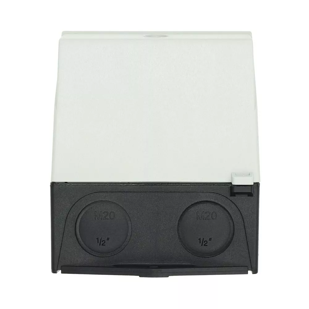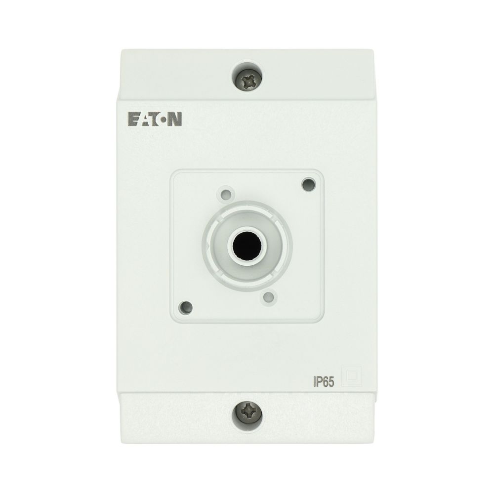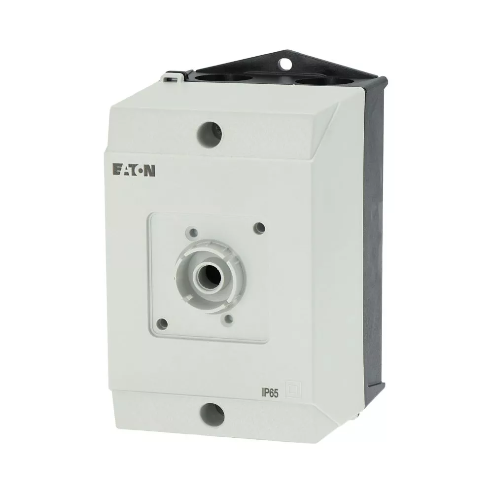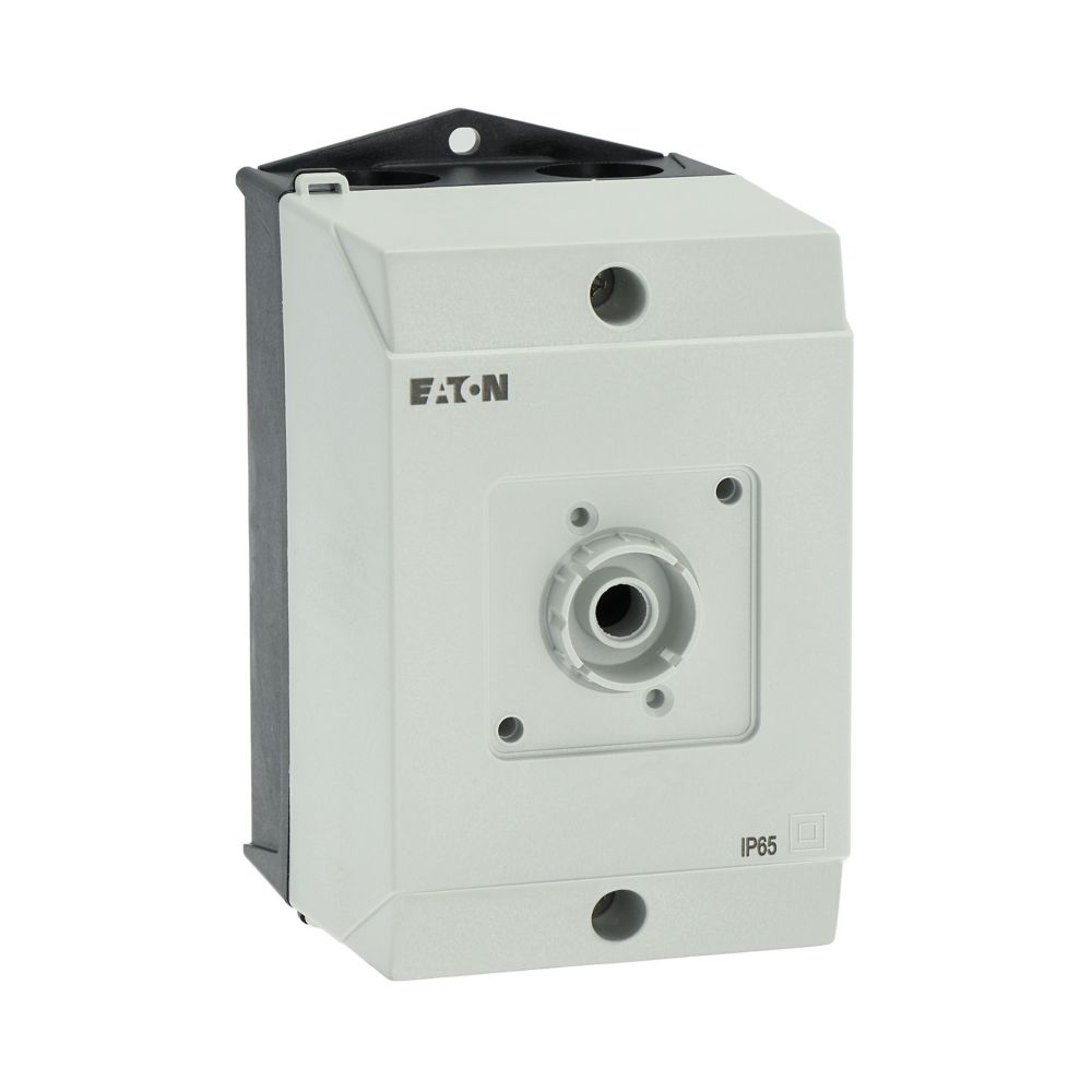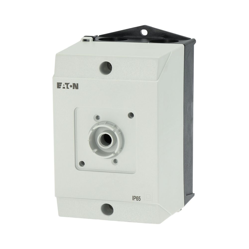 Mała obudowa, stopień ochrony IP65, poliwęglan wzmocniony włóknem szklanym, dolna część obudowy RAL 9005, czarny/tylko górna część obudowy RAL 7035, kolor jasnoszary, przebicie sztywne na wprowadzenie kabli metrycznych na górze, na dole, w płycie tylnej, lampka sygnalizacyjna L-. montowana w przepuście w podstawie M20/M25, do przełączników T0-../Z, 3-4 zespoły montażowe