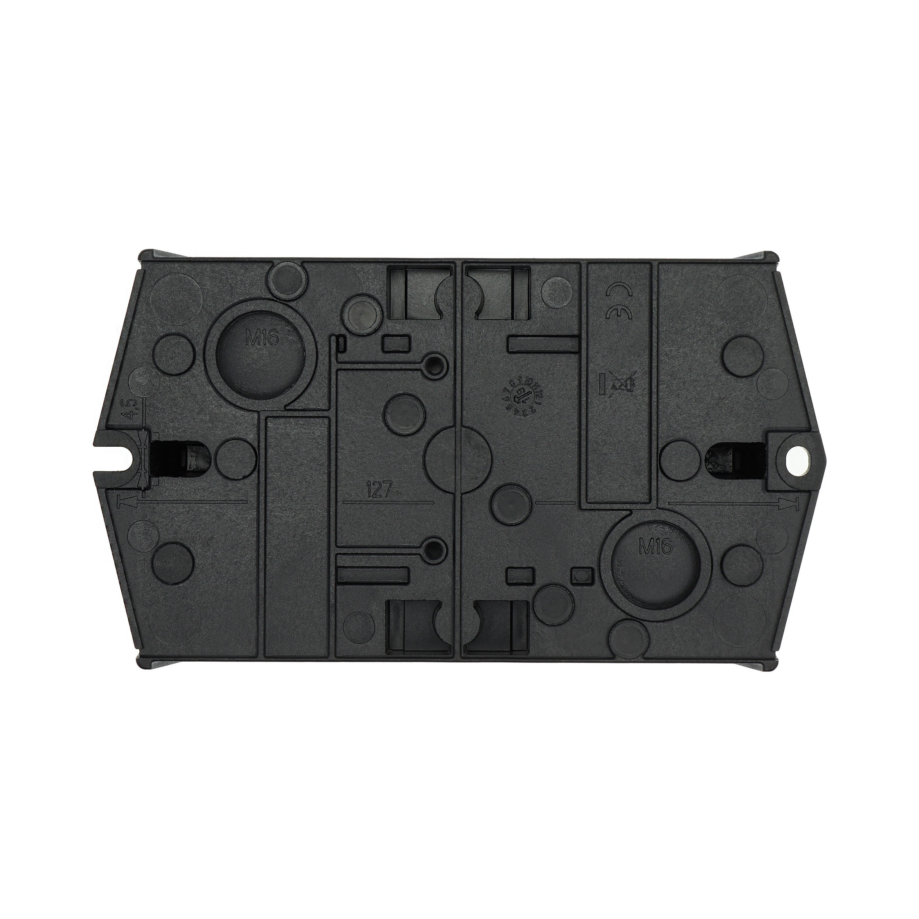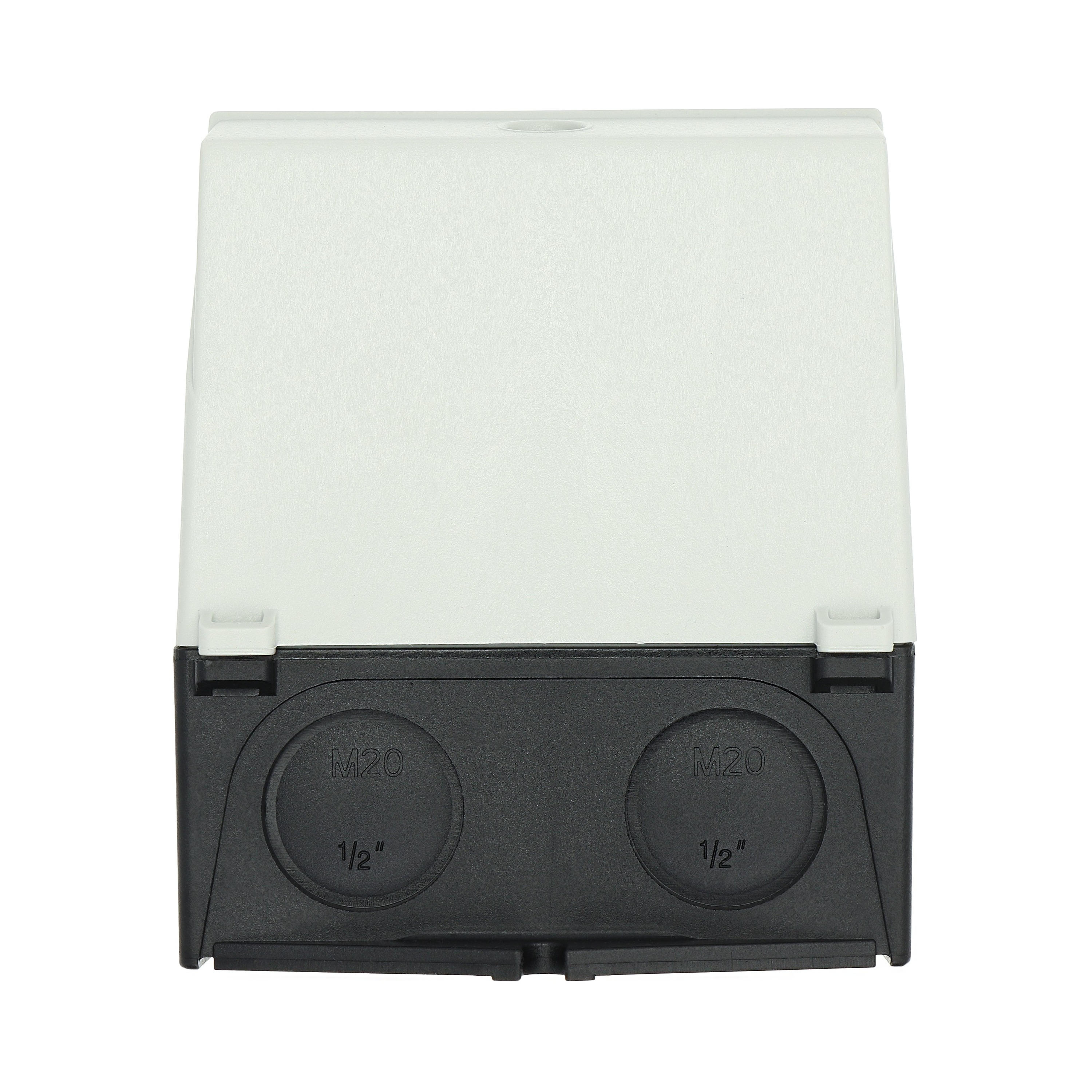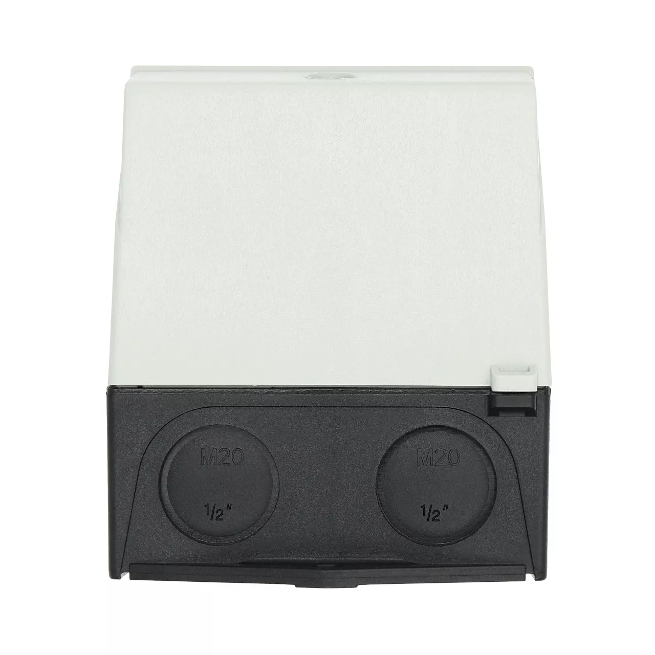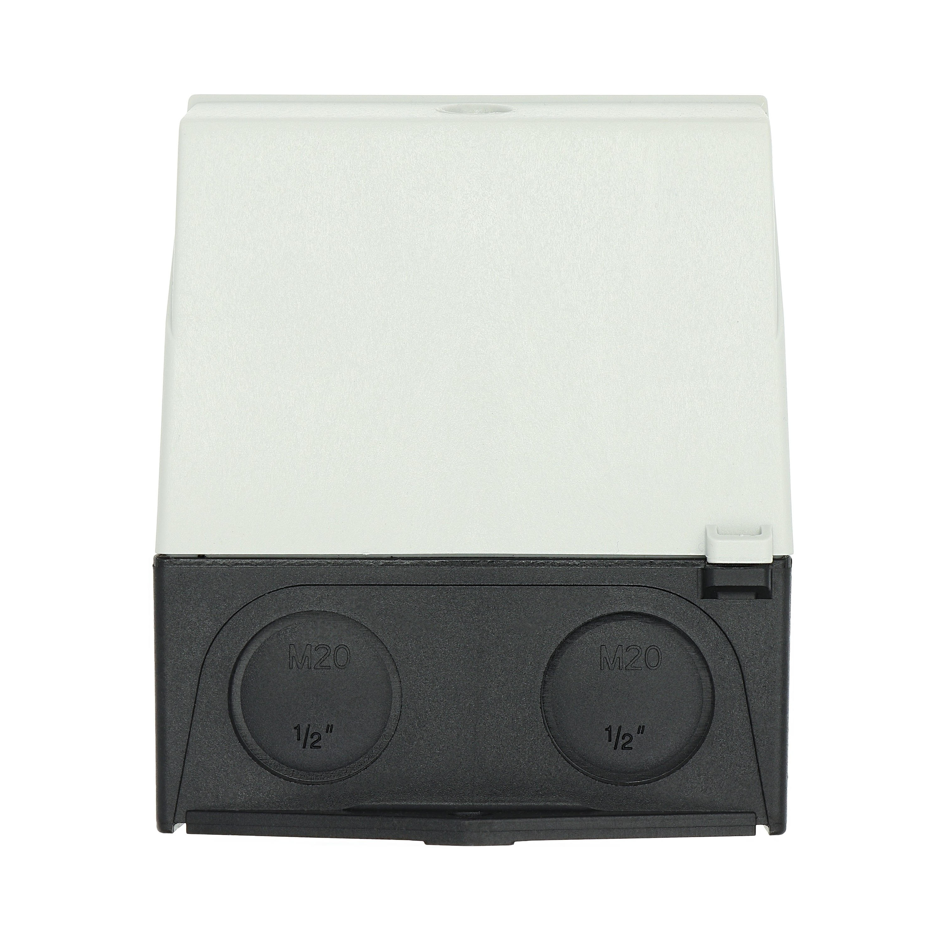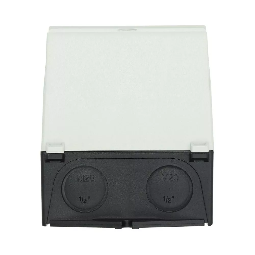 Mała obudowa, stopień ochrony IP65, poliwęglan wzmocniony włóknem szklanym, dolna część obudowy RAL 9005, czarny/tylko górna część obudowy RAL 7035, kolor jasnoszary, przebicie sztywne na wprowadzenie kabli metrycznych na górze, na dole, w płycie tylnej, lampka sygnalizacyjna L-. montowana w przepuście w podstawie M20/M25, do przełączników T0-../Z, 3-4 zespoły montażowe