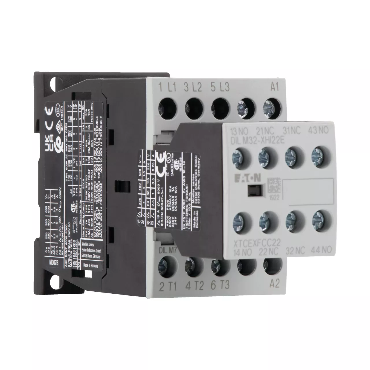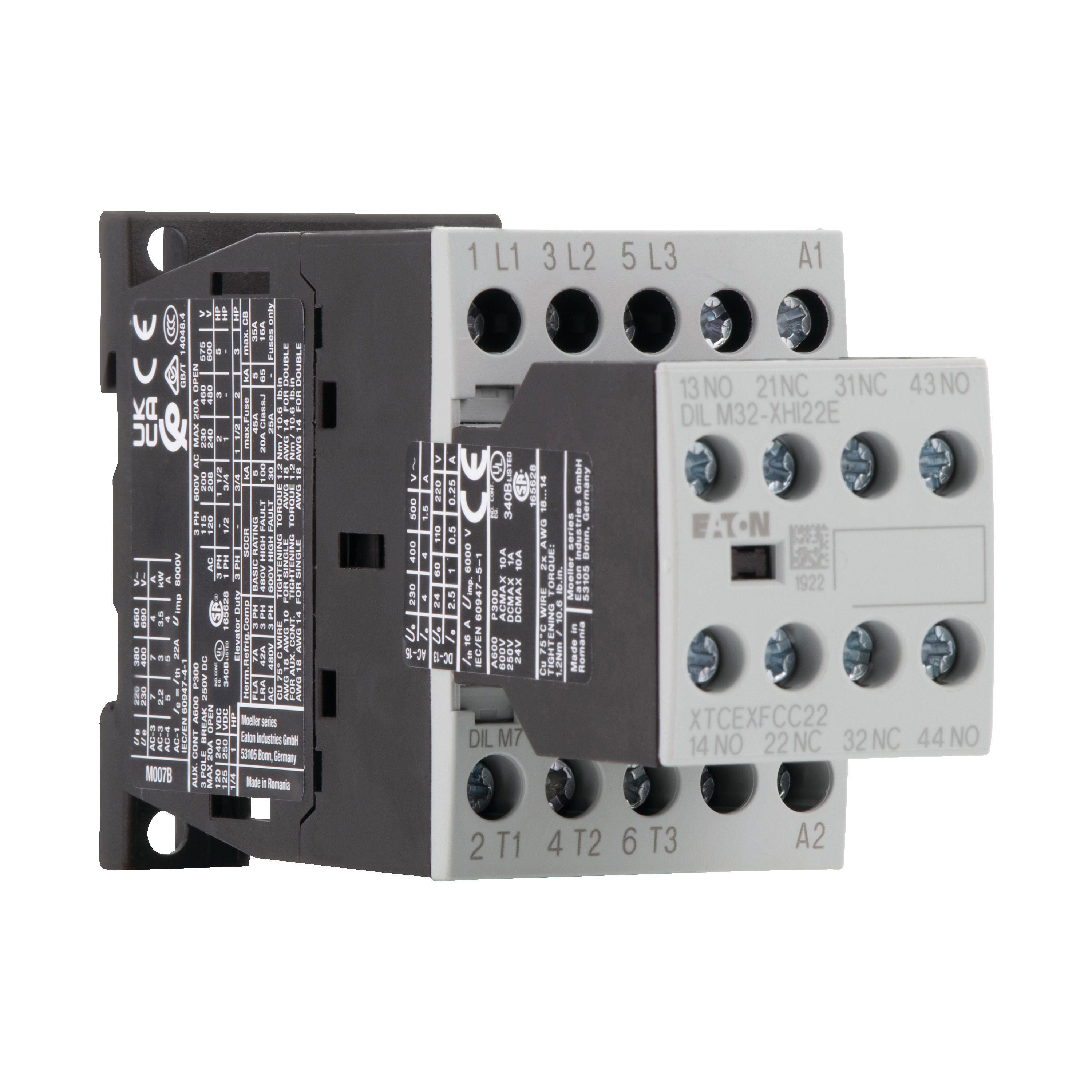 Stycznik, Zastosowanie: Styczniki do silników, Kompletne urządzenia do 170 A, Kategoria użytkowa: AC-1: Obciążenia nieindukcyjne lub obciążenia o małej indukcyjności, piece oporowe, NAC-3: Standardowe silniki indukcyjne AC: rozruch, wyłączanie w trakcie pracy, AC-4: Stand. silniki indukcyjne AC: rozruch, podłączanie, cofanie, praca spowolnion, Sposób podłączenia: Zaciski śrubowe, Uwagi: Odpowiednie również dla silników o klasie sprawności IE3., Urządzenia spełniające normy IE3 są oznaczone odpowiednim logo na opakowaniu., Znamionowy prąd roboczy AC-3, 380 V 400 V: Ie= 7 A, Znamionowy prąd roboczy AC-1 Prąd cieplny umowny na wolnym powietrzu, 3-biegunowy