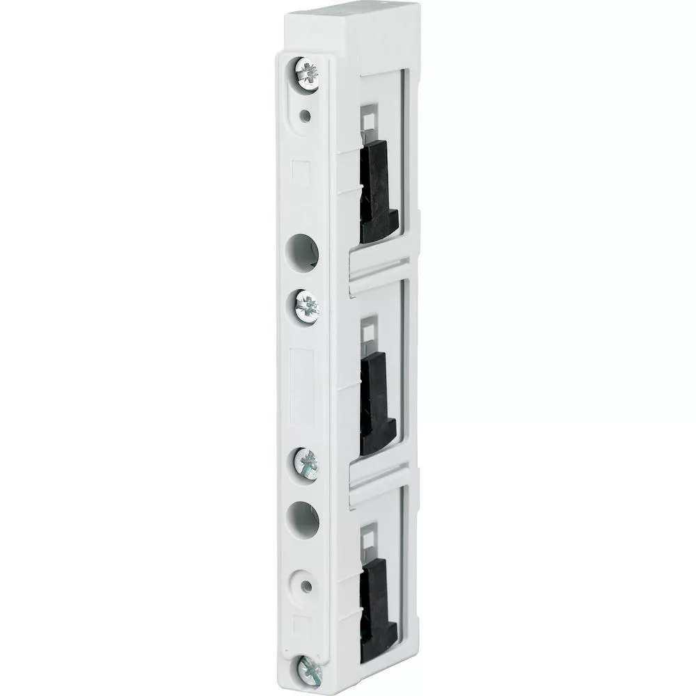 IEC-Sammelschienenträger, 60-mm-System, Bemessungsbetriebsstrom le = 630 A, Pole = 3, verwendbar für 12 x 5/10, 20 x 5/10 und 30 x 5/10, mit Rastschieber zum Anpassen an jeweilige Schienengröße, mit innen liegenden Anschraublöchern, temperaturbeständig bis 120 °C, Kriechstromfestigkeit CTI 200, selbstauslöschend UL 94, RAL 7035, Thermoplast, silikonfrei, chlorfrei, halogenfrei, Abstand zwischen Sammelschienenträgern entsprechend Kurzschlussfestigkeitsdiagram, Zulassung nach UL