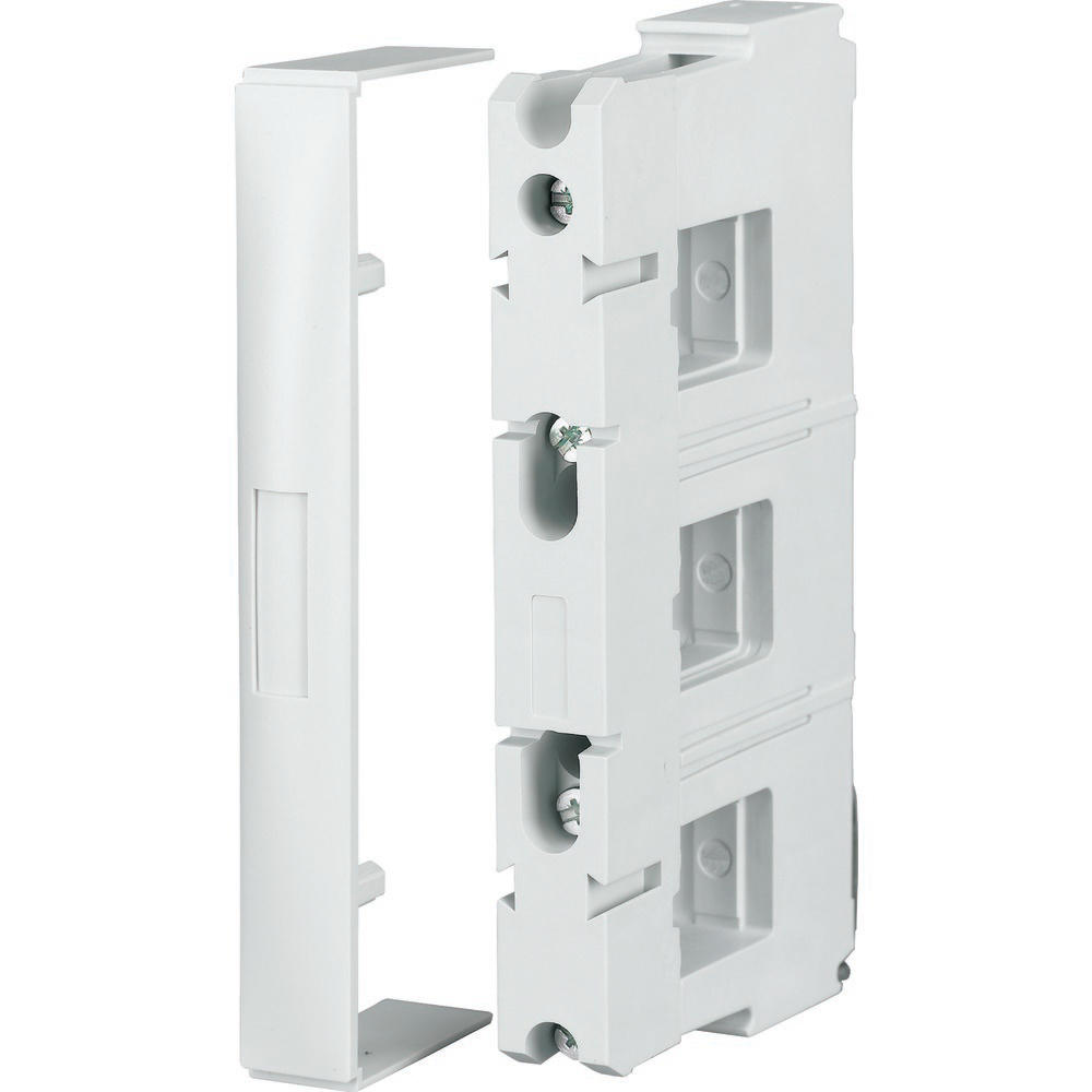IEC-/UL-Sammelschienenträger, 60-mm-System, Bemessungsbetriebsstrom le = 1600 A, Pole = 3, verwendbar für Doppel-T-Profil, als Außen- und Mittenträger geeignet, mit innen liegenden Anschraublöchern, temperaturbeständig bis 120 °C, Kriechstromfestigkeit CTI 200, selbstauslöschend UL 94, RAL 7035, Thermoplast, silikonfrei, chlorfrei, halogenfrei, Abstand zwischen Sammelschienenträgern entsprechend Kurzschlussfestigkeitsdiagram, Zulassung nach UL