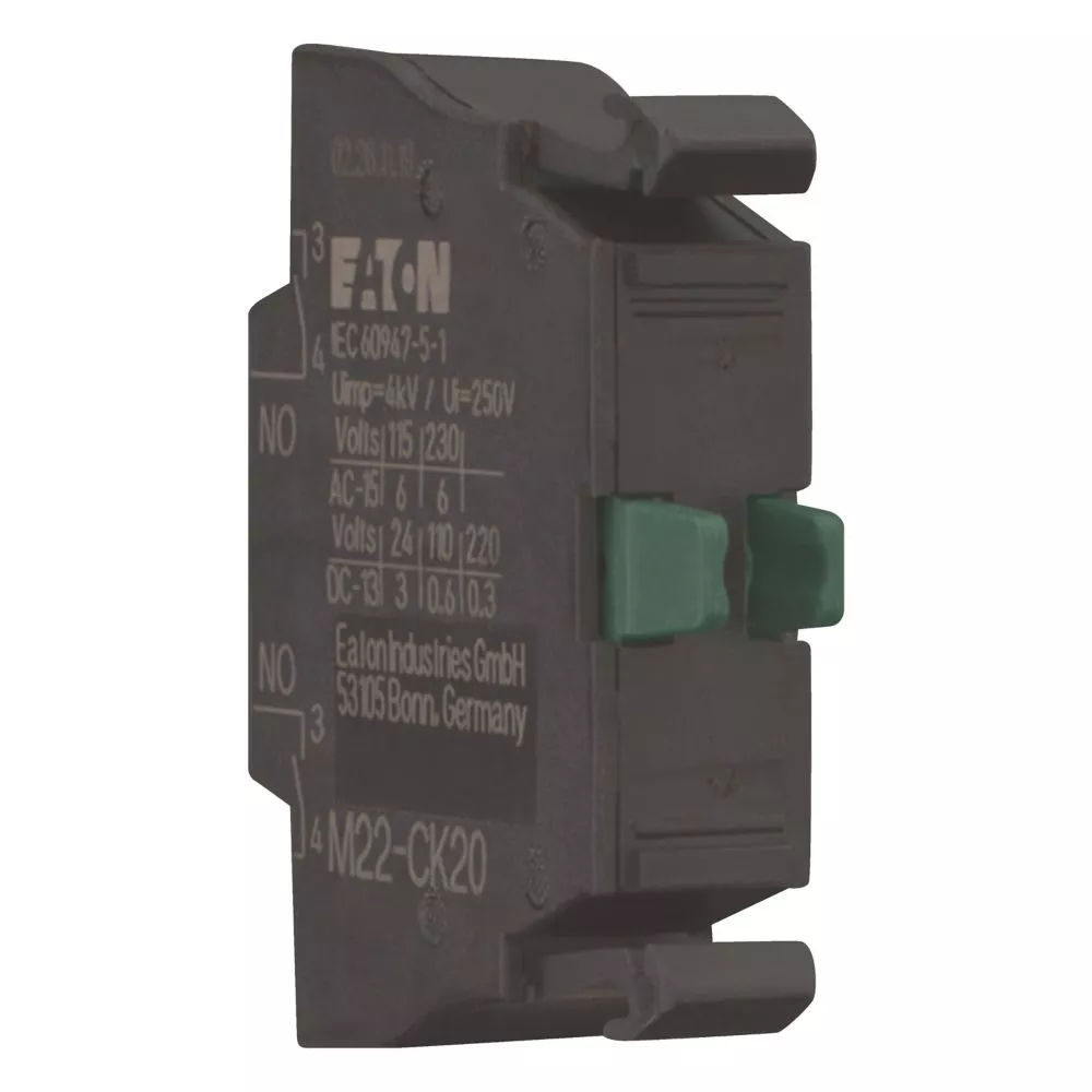 Element stykowy, Norma/Certyfikat: UL/CSA, IEC, Rozmiar: NZM1/2/3/4, Sposób podłączenia: Zacisk Cage Clamp, Mocowanie: Mocowanie z przodu, Opis: W przypadku korzystania z wyłączników awaryjnych M22-PV… maks. 2 styki = 4 styki rozwierne/zwierne, Cage Clamp jest zarejestrowanym znakiem handlowym firmy Wago Kontakttechnik GmbH/Minden, Niemcy, Zestyki Z = zwierne: 2 styki N/O (Z), Stopień ochrony: IP20, Podłączanie do SmartWire-DT: nie, Typ połączenia: Styk podwójny, Opis styku pomocniczego HIA wskazującego wyzwolenie: Ogólne wskazanie zadziałania „+”, przy wyzwoleniu przez wyzwalacz wzrostowy, wyzwalacz przeciążeniowy