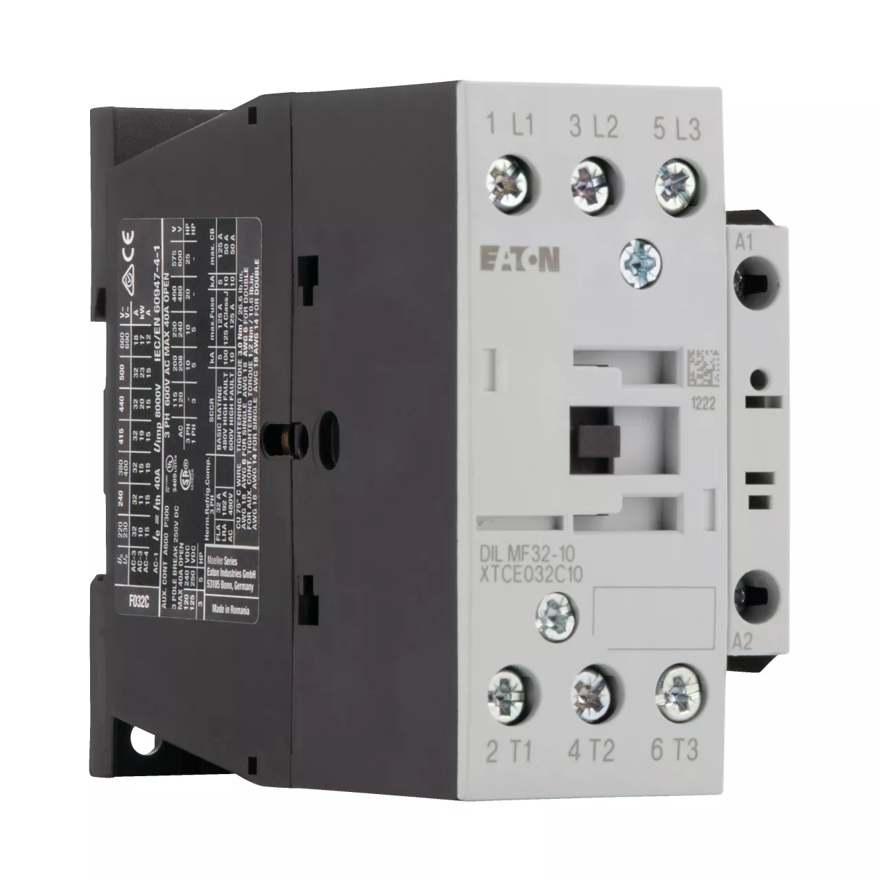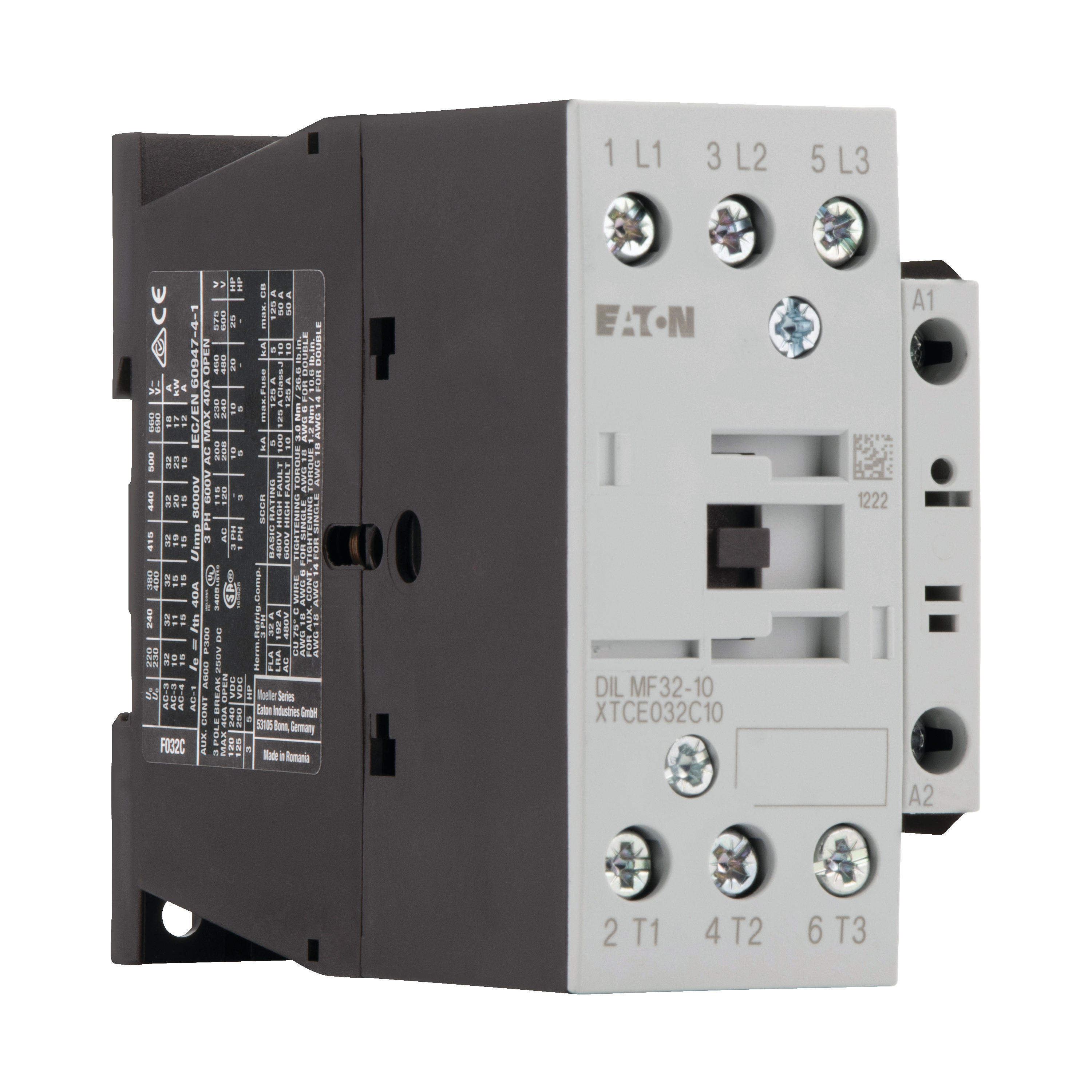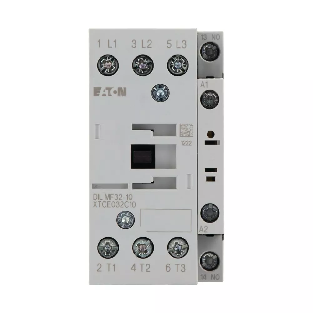 Stycznik, Zastosowanie: Styczniki dla 4-biegunowych odbiorników elektrycznych, Styczniki do 200 A, 4-biegunowy, Kategoria użytkowa: AC-1: Obciążenia nieindukcyjne lub obciążenia o małej indukcyjności, piece oporowe, NAC-3: Standardowe silniki indukcyjne AC: rozruch, wyłączanie w trakcie pracy, Sposób podłączenia: Zaciski śrubowe, Liczba biegunów: 4-biegunowy, 380 V 400 V: Ie= 18 A, Konwencjonalny prąd termiczny, 3-biegunowy, 50–60 Hz Otwarcie przy 40°C: Ith =Ie= 32 A, w obudowie: Ith= 27 A, Konwencjonalny prąd termiczny, 1 biegun otwarcie: Ith = 84 A, w obudowie: Ith= 76 A, 220 V 230 V: P= 5 kW, 380 V 400 V: P= 7,5 kW, 660 V 690 V: P = 11 kW, Zestyki Z = zwierne: 1 NO