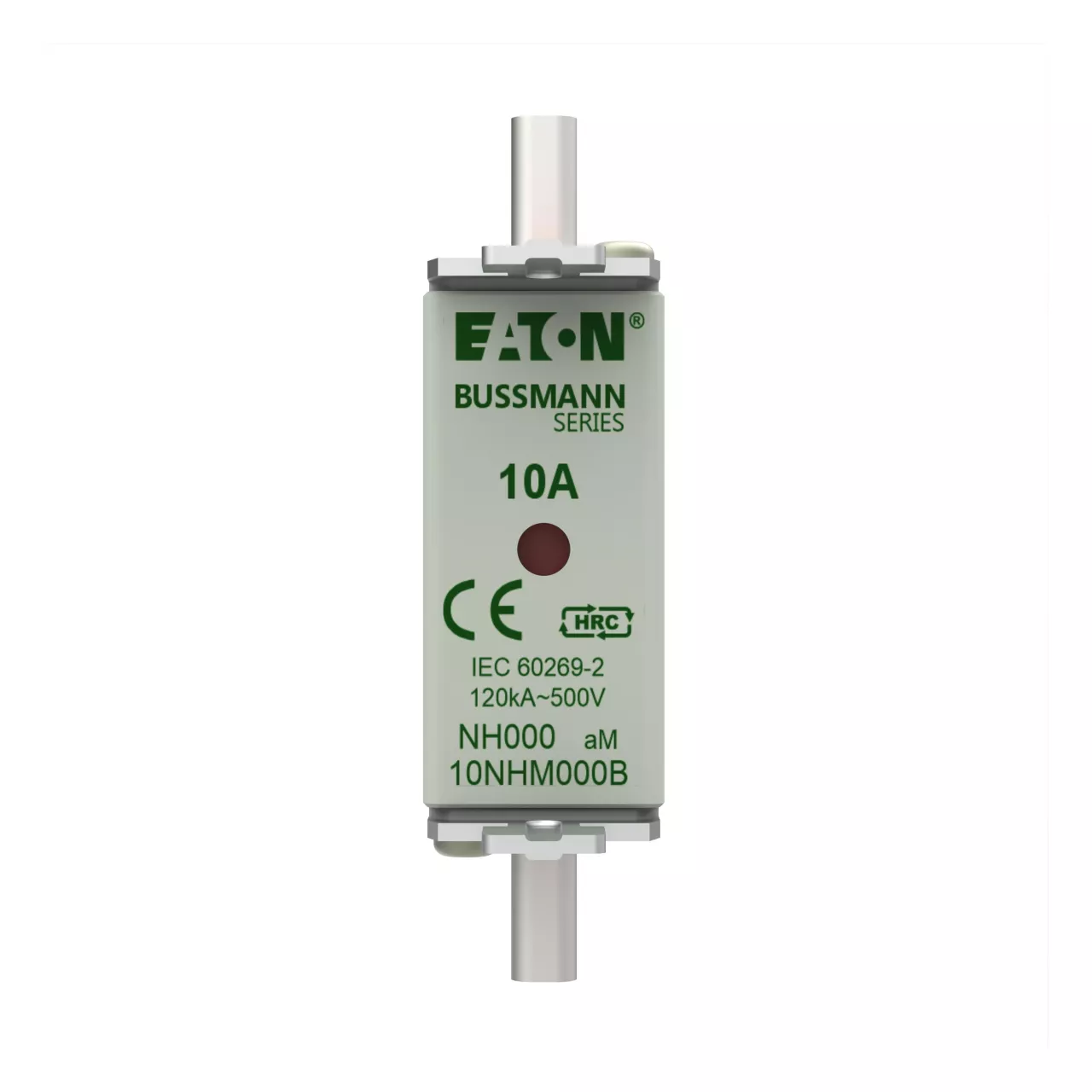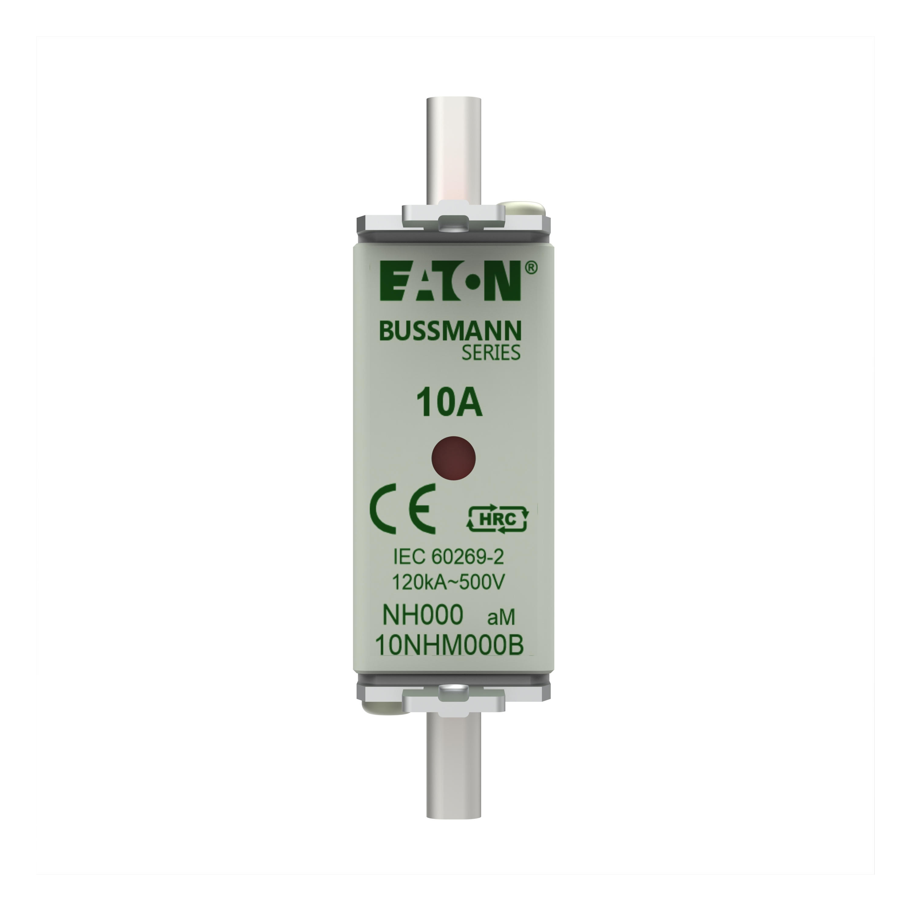 Bezpiecznik, Wkładka bezpiecznikowa, Niskie napięcie, 10 A, AC 500 V, NH000, aM, IEC, sygnalizator podwójny, korpus kwadratowy ze stykami nożowymi, ruchome uchwyty, IEC 60269-2 układ bezpiecznikowy A, DIN 43620, VDE 0636-2, Zdolność wyłączania 120 kA