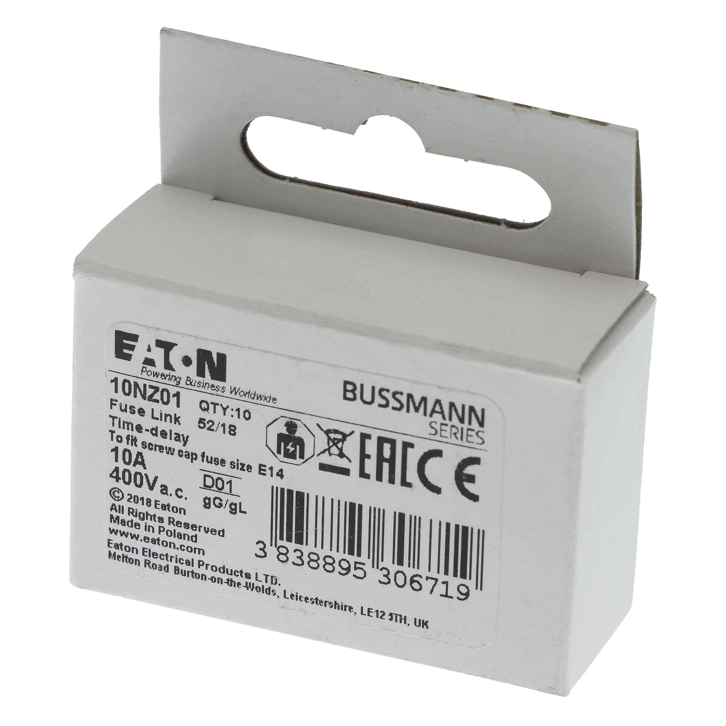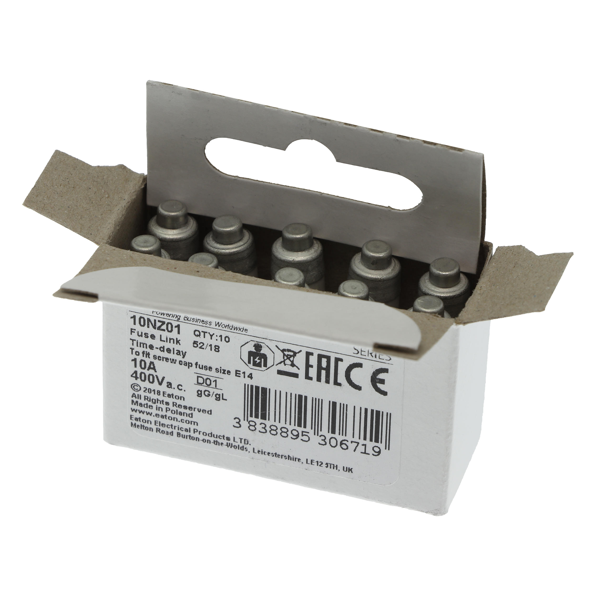 10NZ01 Wkładka D01 10A T GL/GG 400VAC E14