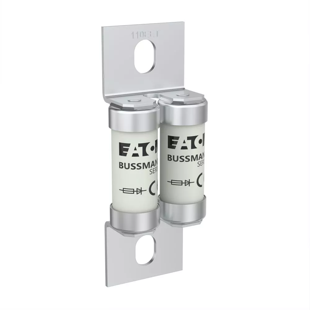 Sicherung, Sicherungseinsatz, superflink, 110 A, 690 V AC, 500 V DC, BS88, 37 x 94 mm, aR, BS, gekröpfte verschraubte Anschlussfahnen, Gemeinsamer DC-Bus Schutz, Gleichstromantriebe, Leistungsumrichter/Gleichrichter und Anlasser mit reduzierter Spannung, BS88-4, IEC 60269-4, Ausschaltvermögen 200 kA, Optionale Zusatzausrüstung Sicherungshalter BH-1132