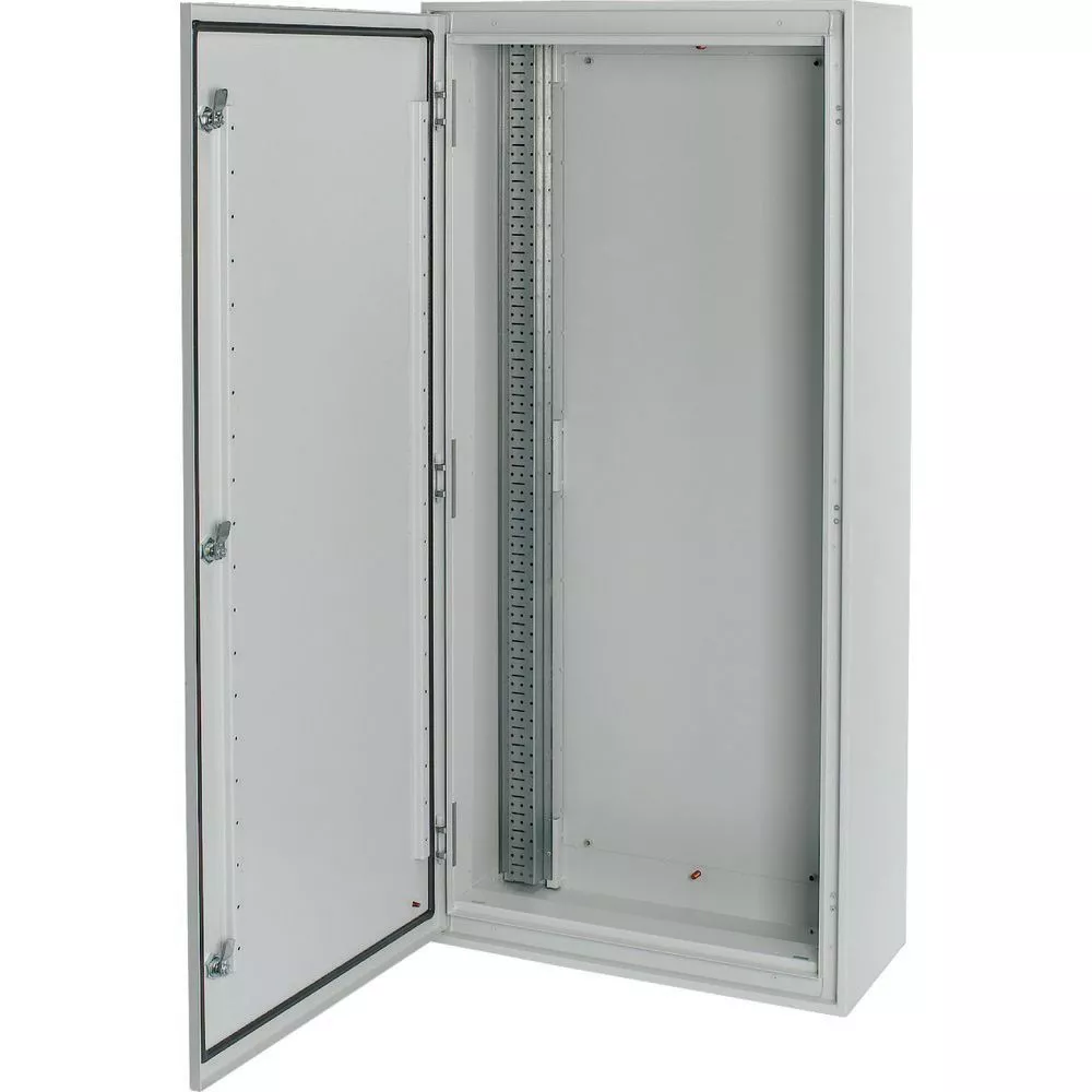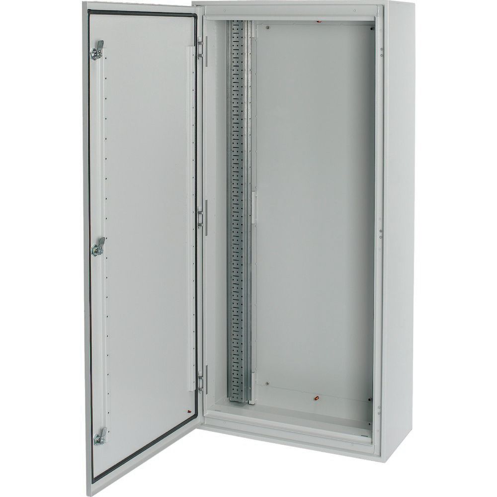 Feuchtraum-Aufputz-Installationsverteiler IP55, BPM-O-...Breite 600 mm, Außenhöhe = 760 mm, Frontplatte Höhe 650 mm, Tiefe 270 mm, geschweißtes Gehäuse mit Tür und Doppelbartverschluss, geerdete Metallabdeckungen, ausgezeichnete Standfestigkeit durch die verschweißte Konstruktion, gut strukturierte, mehrschichtige Konstruktion für leicht zugängliche Installation, Tür mit Wechselanschlag, großzügiger Verdrahtungsraum, offene Kabeleinführung oben, vorbereitet für F3A-Flansch, variabler Innenausbau mit oder ohne herausnehmbarem Montagerahmen, Inneninstallation mit MSW oder Befestigungstürmen möglich, bei Aufbau MSW