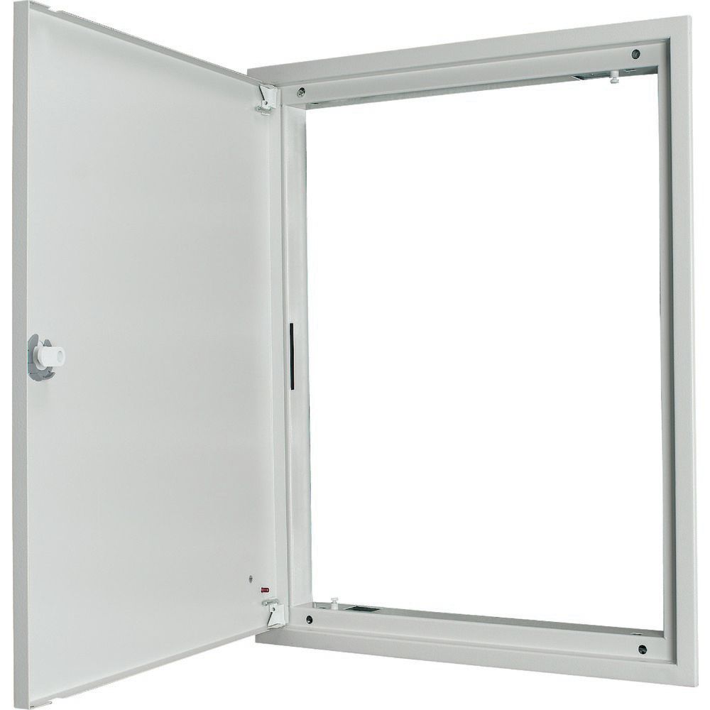 Rozdzielnica podtynkowa, 3-komponentowa rama drzwi do montażu podtynkowego, z drzwiami, BP.-U-3S-, blacha stalowa, malowana proszkowo, kolor biały RAL 9016, szerokość zewnętrzna 635 mm, wysokość zewnętrzna 760 mm, wyposażenie w zestawie: ramy, drzwi z zawiasami, trzypunktowy zamek obrotowy