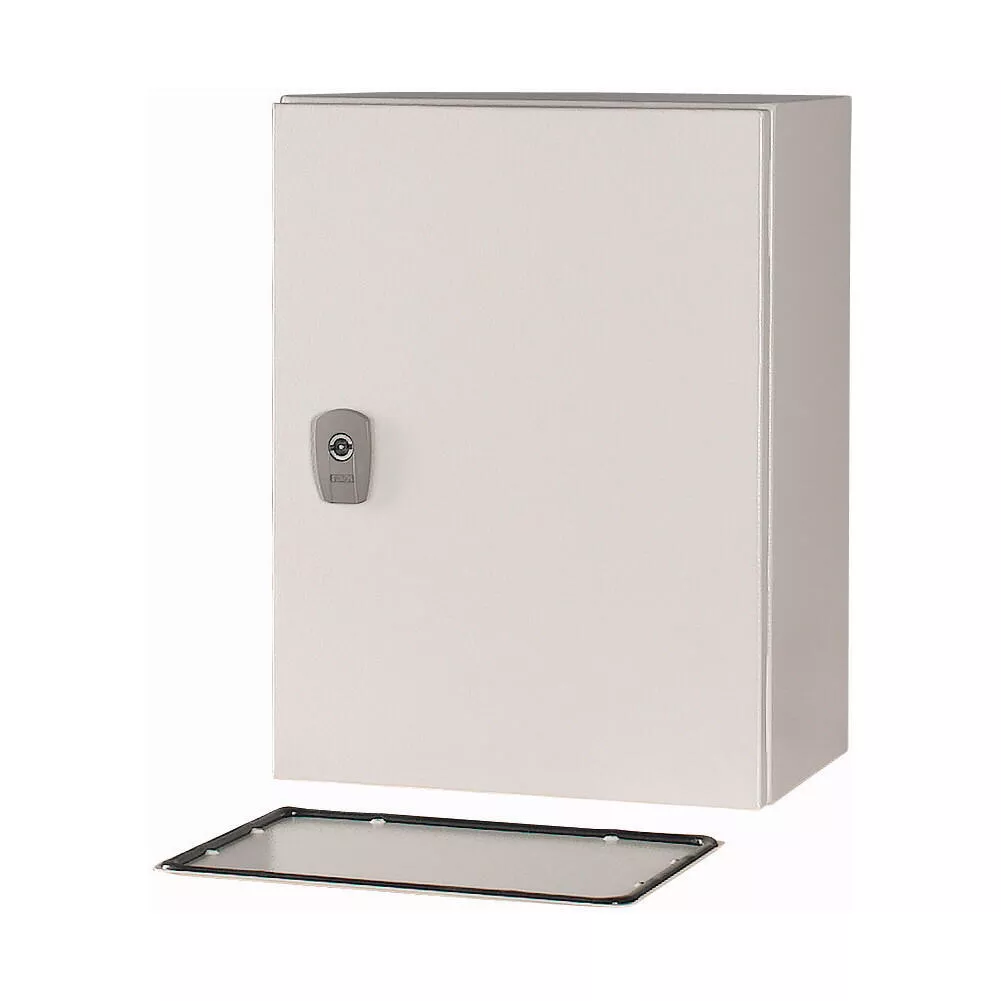 Wandaufbaugehäuse CS, Tür mit umlaufender Polyurethanschaumdichtung , Stoßfestigkeit IK10 nach EN 62262, eintürig, Türanschlag rechts, Öffnungswinkel 120°, Scharnierachsen mit Schnellwechseltechnik, Türprofilleiste mit Lochung im Abstand von 25 mm zur Befestigung von DIN-Tragschienen oder zur Befestigung von Kabelkanälen und -leitungen, genormtes Schließsystem mit Vorreiber, komplett aus Metall, mit Montageplatte aus Stahlblech, Lieferumfang: Schloss, 3 mm-Doppelstabschlüssel. Optionales Zubehör z.B. Drehkomfortgriff PHZ-A-ADD-ON mit Zylinderschloss PHZ-E10/30-GS. Ausgelegt gemäß IEC/EN 62208