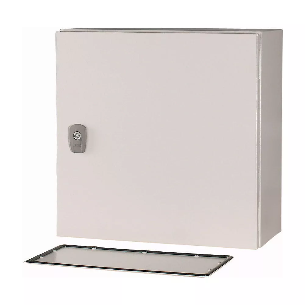 Wandaufbaugehäuse CS, Tür mit umlaufender Polyurethanschaumdichtung , Stoßfestigkeit IK10 nach EN 62262, eintürig, Türanschlag rechts, Öffnungswinkel 120°, Scharnierachsen mit Schnellwechseltechnik, Türprofilleiste mit Lochung im Abstand von 25 mm zur Befestigung von DIN-Tragschienen oder zur Befestigung von Kabelkanälen und -leitungen, genormtes Schließsystem mit Vorreiber, komplett aus Metall, mit Montageplatte aus Stahlblech, Lieferumfang: Schloss, 3 mm-Doppelstabschlüssel. Optionales Zubehör z.B. Drehkomfortgriff PHZ-A-ADD-ON mit Zylinderschloss PHZ-E10/30-GS. Ausgelegt gemäß IEC/EN 62208