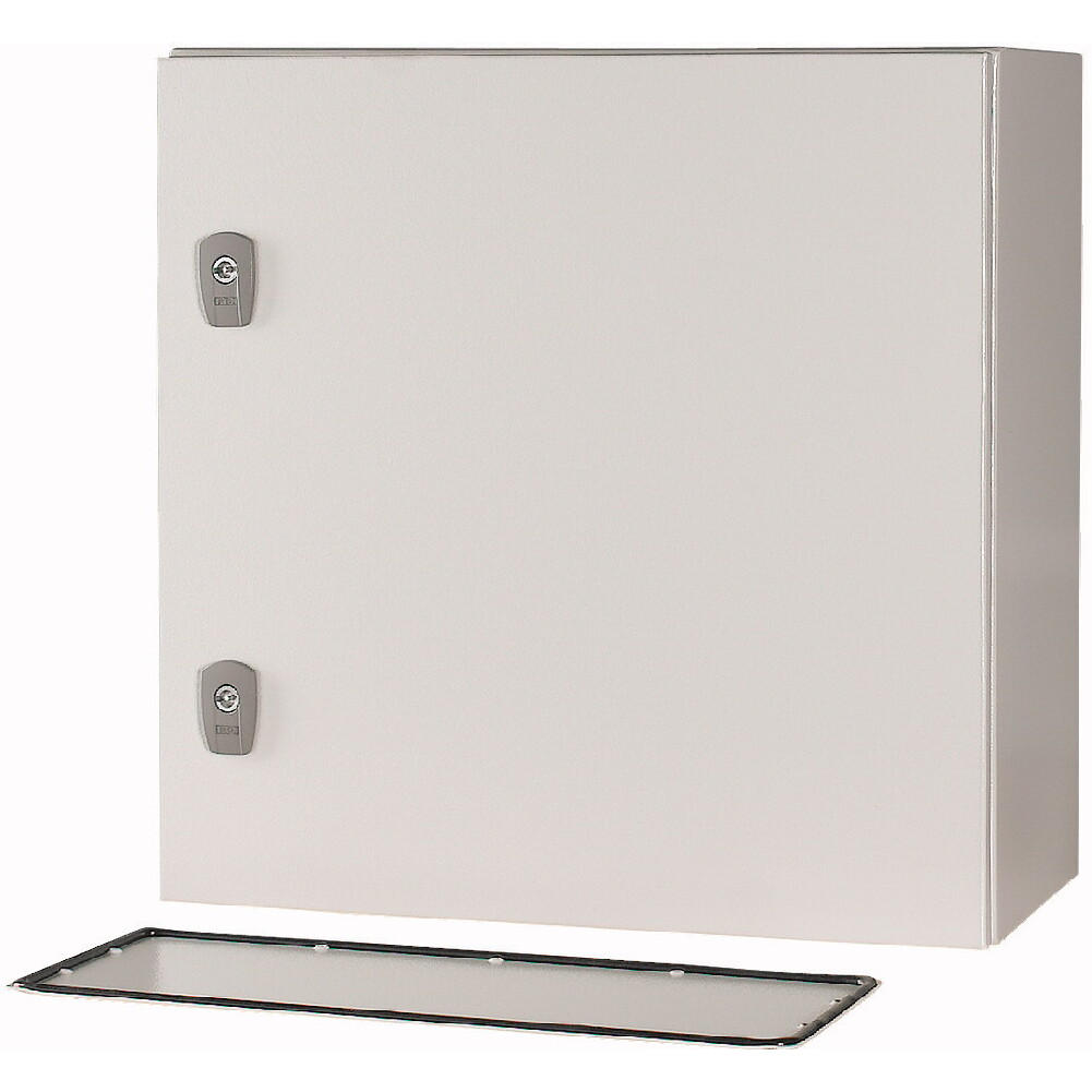 Wandaufbaugehäuse CS, Tür mit umlaufender Polyurethanschaumdichtung , Stoßfestigkeit IK10 nach EN 62262, eintürig, Türanschlag rechts, Öffnungswinkel 120°, Scharnierachsen mit Schnellwechseltechnik, Türprofilleiste mit Lochung im Abstand von 25 mm zur Befestigung von DIN-Tragschienen oder zur Befestigung von Kabelkanälen und -leitungen, genormtes Schließsystem mit Vorreiber, komplett aus Metall, mit Montageplatte aus Stahlblech, Lieferumfang: Schloss, 3 mm-Doppelstabschlüssel. Optionales Zubehör z.B. Drehkomfortgriff PHZ-A-ADD-ON mit Zylinderschloss PHZ-E10/30-GS. Ausgelegt gemäß IEC/EN 62208