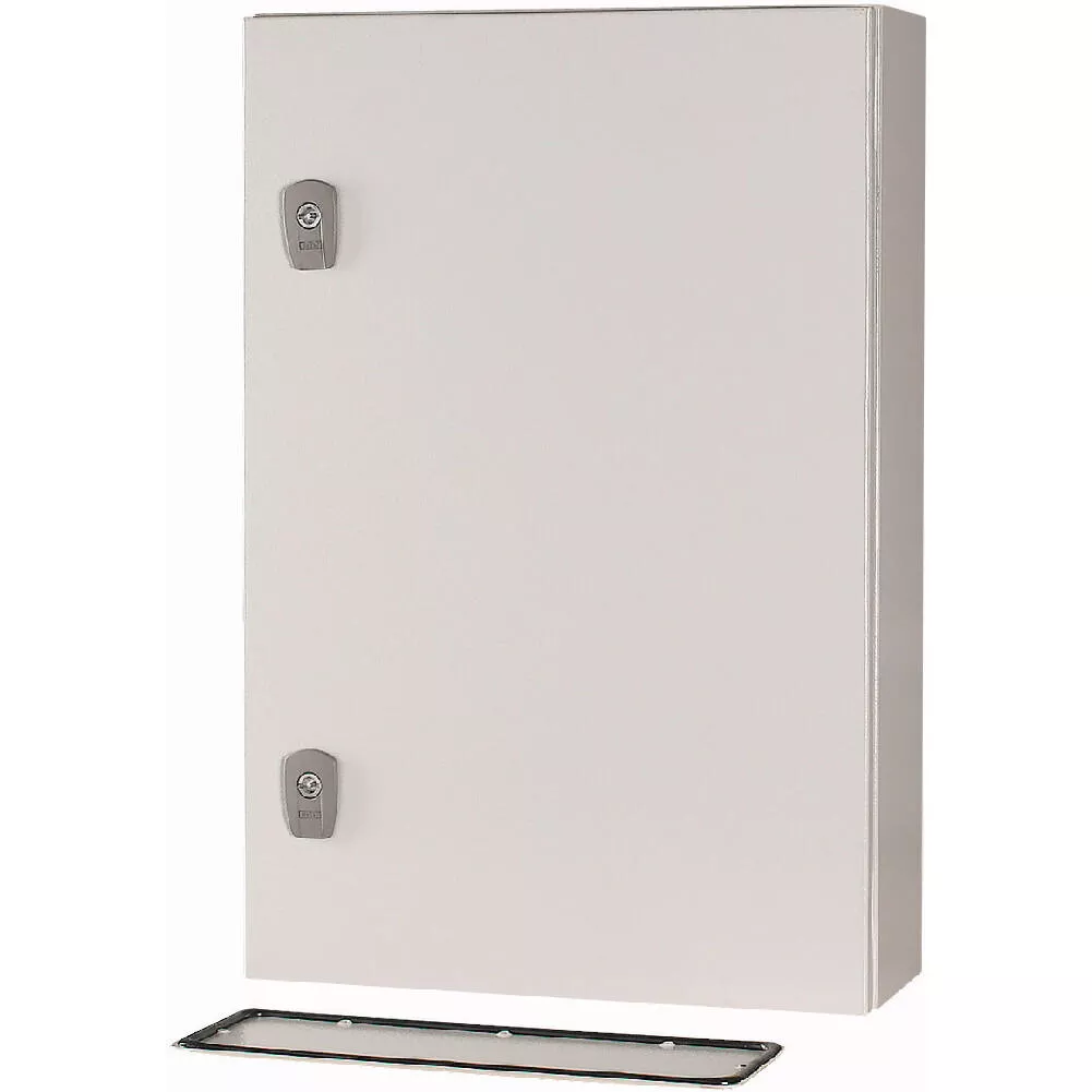 Wandaufbaugehäuse CS, Tür mit umlaufender Polyurethanschaumdichtung , Stoßfestigkeit IK10 nach EN 62262, eintürig, Türanschlag rechts, Öffnungswinkel 120°, Scharnierachsen mit Schnellwechseltechnik, Türprofilleiste mit Lochung im Abstand von 25 mm zur Befestigung von DIN-Tragschienen oder zur Befestigung von Kabelkanälen und -leitungen, genormtes Schließsystem mit Vorreiber, komplett aus Metall, mit Montageplatte aus Stahlblech, Lieferumfang: Schloss, 3 mm-Doppelstabschlüssel. Optionales Zubehör z.B. Drehkomfortgriff PHZ-A-ADD-ON mit Zylinderschloss PHZ-E10/30-GS. Ausgelegt gemäß IEC/EN 62208