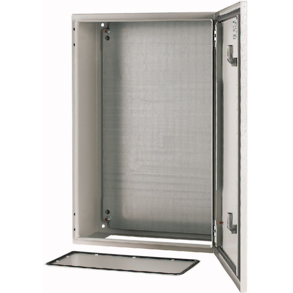 Wandaufbaugehäuse CS, Tür mit umlaufender Polyurethanschaumdichtung , Stoßfestigkeit IK10 nach EN 62262, eintürig, Türanschlag rechts, Öffnungswinkel 120°, Scharnierachsen mit Schnellwechseltechnik, Türprofilleiste mit Lochung im Abstand von 25 mm zur Befestigung von DIN-Tragschienen oder zur Befestigung von Kabelkanälen und -leitungen, genormtes Schließsystem mit Vorreiber, komplett aus Metall, mit Montageplatte aus Stahlblech, Lieferumfang: Schloss, 3 mm-Doppelstabschlüssel. Optionales Zubehör z.B. Drehkomfortgriff PHZ-A-ADD-ON mit Zylinderschloss PHZ-E10/30-GS. Ausgelegt gemäß IEC/EN 62208
