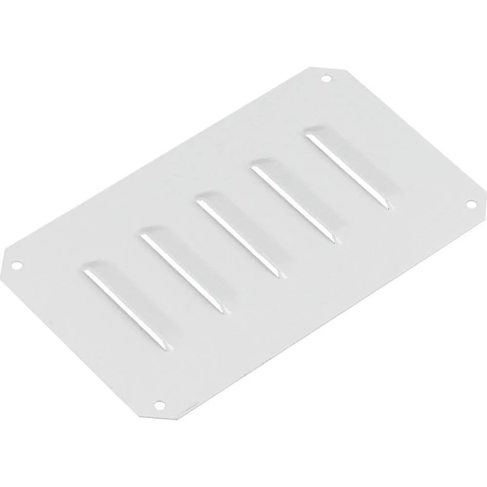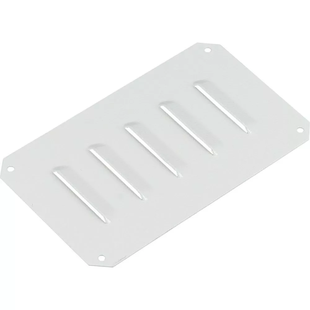 Belüftete Platten, vertikale Anordnung der Lüftungsschlitze, pulverbeschichteter Stahlblech-Rahmen RAL7035, Lieferung mit Befestigungsmaterial