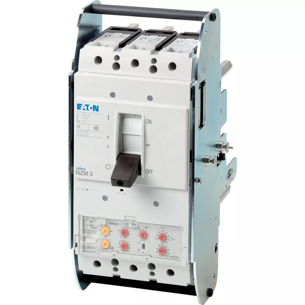 Vermogensautomaat NZM3, 3-polig, Schakelvermogen 400/415 V 50 Hz( Icu ): 50 kA, Nominale bedrijfsstroom = nominale ononderbroken stroom Nominale bedrijfsstroom = nominale ononderbroken stroom (ln = lu): 250 A, Installatietype: Uitrijtechniek, Schroefaansluiting, Standaard/goedkeuring: IEC, Beschermingsfunctie: Systemen, kabel, selectiviteit en generatorbeveiliging