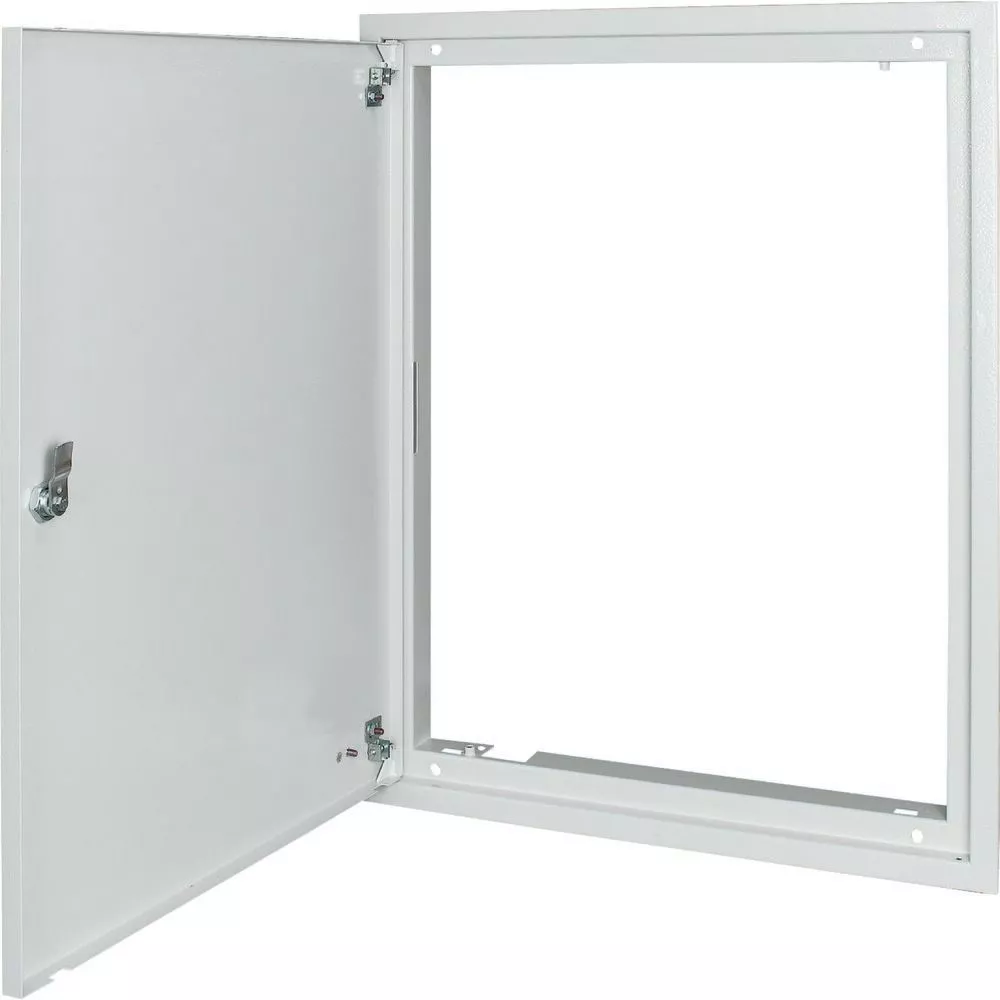 Rozdzielnica podtynkowa, 3-komponentowa rama drzwiczek do montażu podtynkowego, IP30, z drzwiczkami, ognioodporna, BP-U-3S...-EW, blacha stalowa, malowana proszkowo, kolor szary RAL 7035, szerokość zewnętrzna 635 mm, wysokość zewnętrzna 1260 mm, wyposażenie w zestawie: ramy, drzwiczki ognioodporne (z zawiasami i zamkiem), trzypunktowy zamek obrotowy