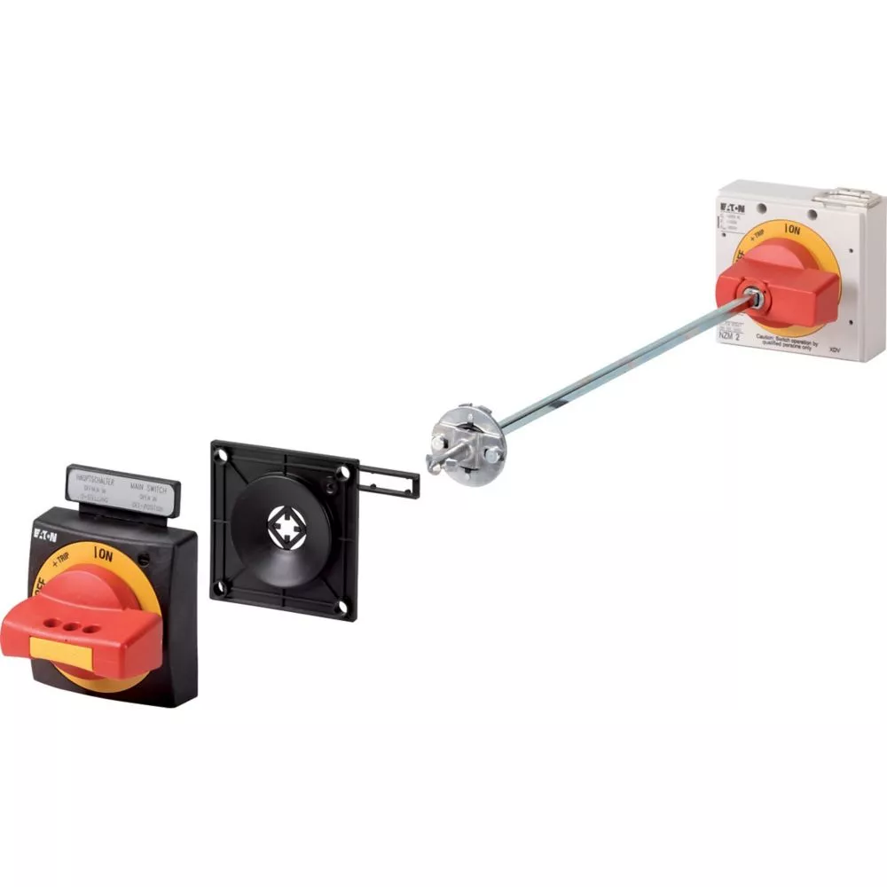 Optionele accessoires voor vermogensschakelaars uit de serie NZM bieden een uitgebreid assortiment toepassingsmogelijkheden voor wereldwijd gebruik. Modulaire functionele groepen maken de montage flexibel en eenvoudig. Opmerking: Deurkoppelingshandgreep met draaibediening. Extra draaigreep op schakelaar met bedieningswijze Bewuste handeling/Deliberate Action. Verlengingsas NZM…-XV6 voor montagediepte van 600 mm, asverlenging NZM1/2-XV4 bij NZM1 voor 400 mm inbouwdiepte. Externe waarschuwingsplaat/indicatieplaat in Duits/Engels. Zwart-gele bliksemschicht. Externe waarschuwingsplaat/markeringsplaat kan worden vastgeklikt