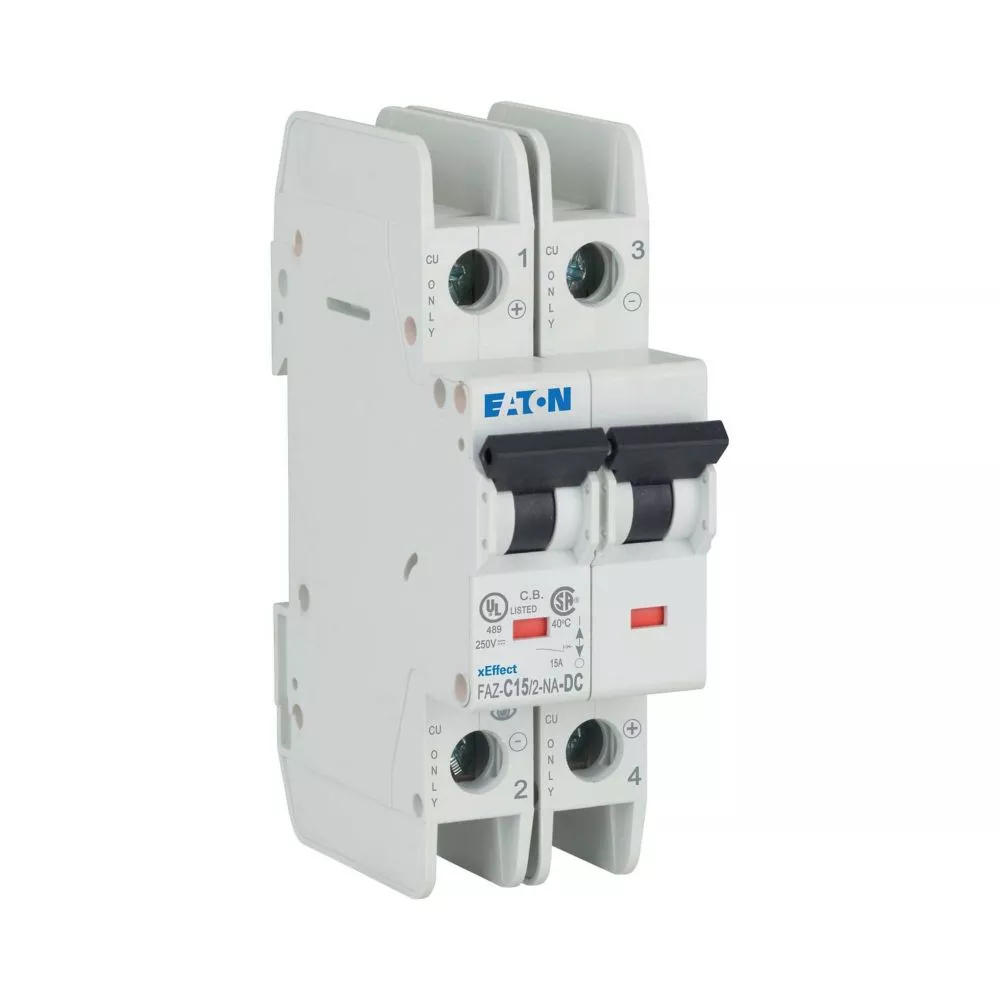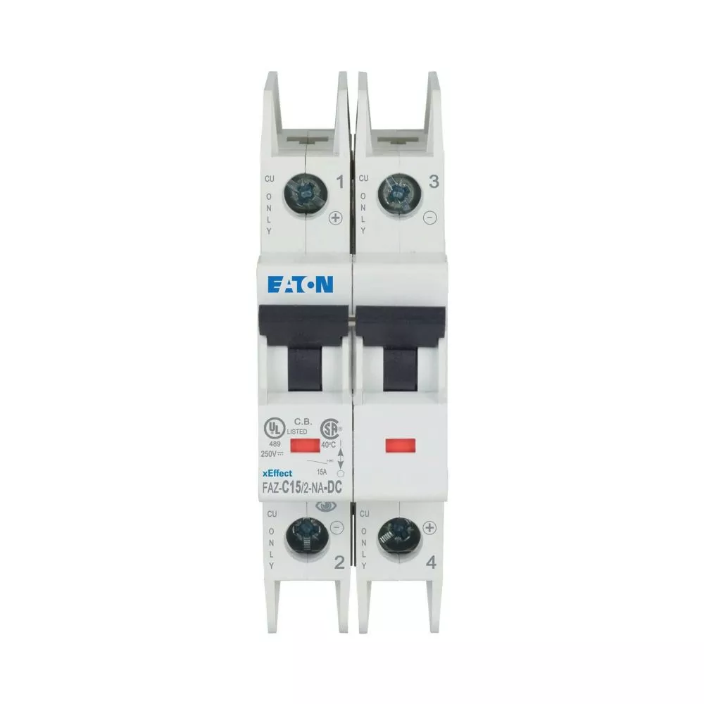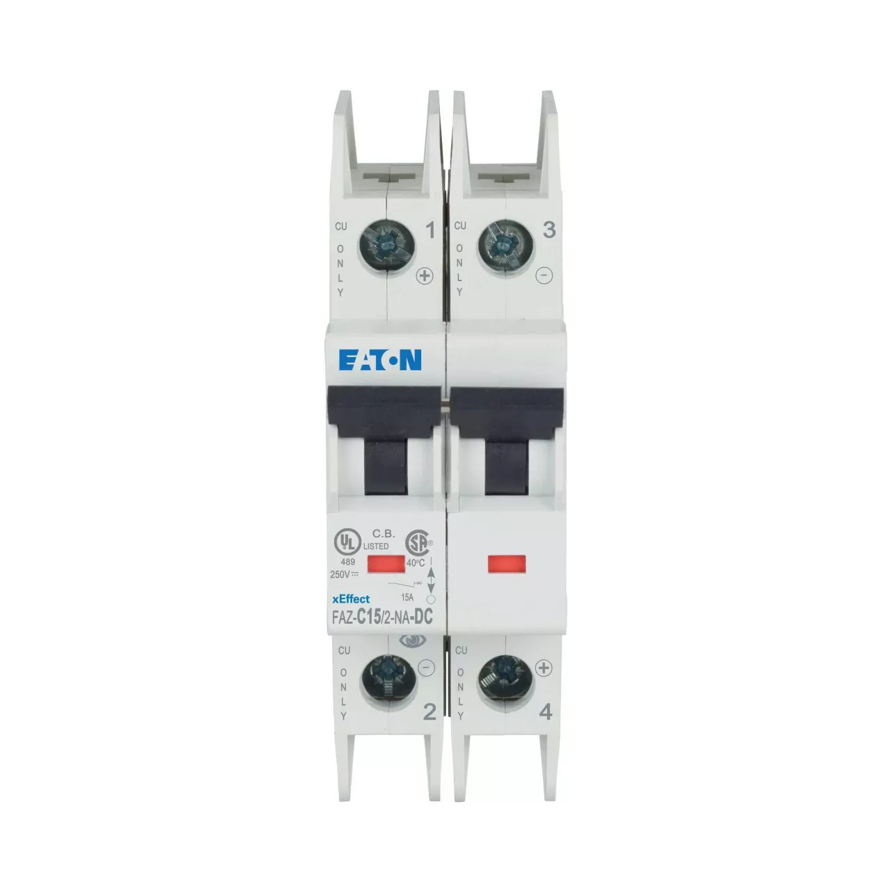 Installatieautomaat (MCB), FAZ-DC, 2-polig, afschakelkarakteristiek: C, nominale stroom In: 15 A, nominaal schakelvermogen (IEC/EN 60947-2): 10 kA, Schakelapparatuur voor export naar Noord-Amerika (UL-gecertificeerd)