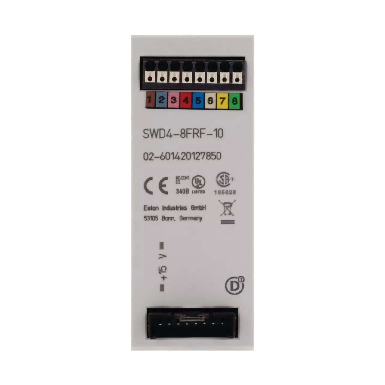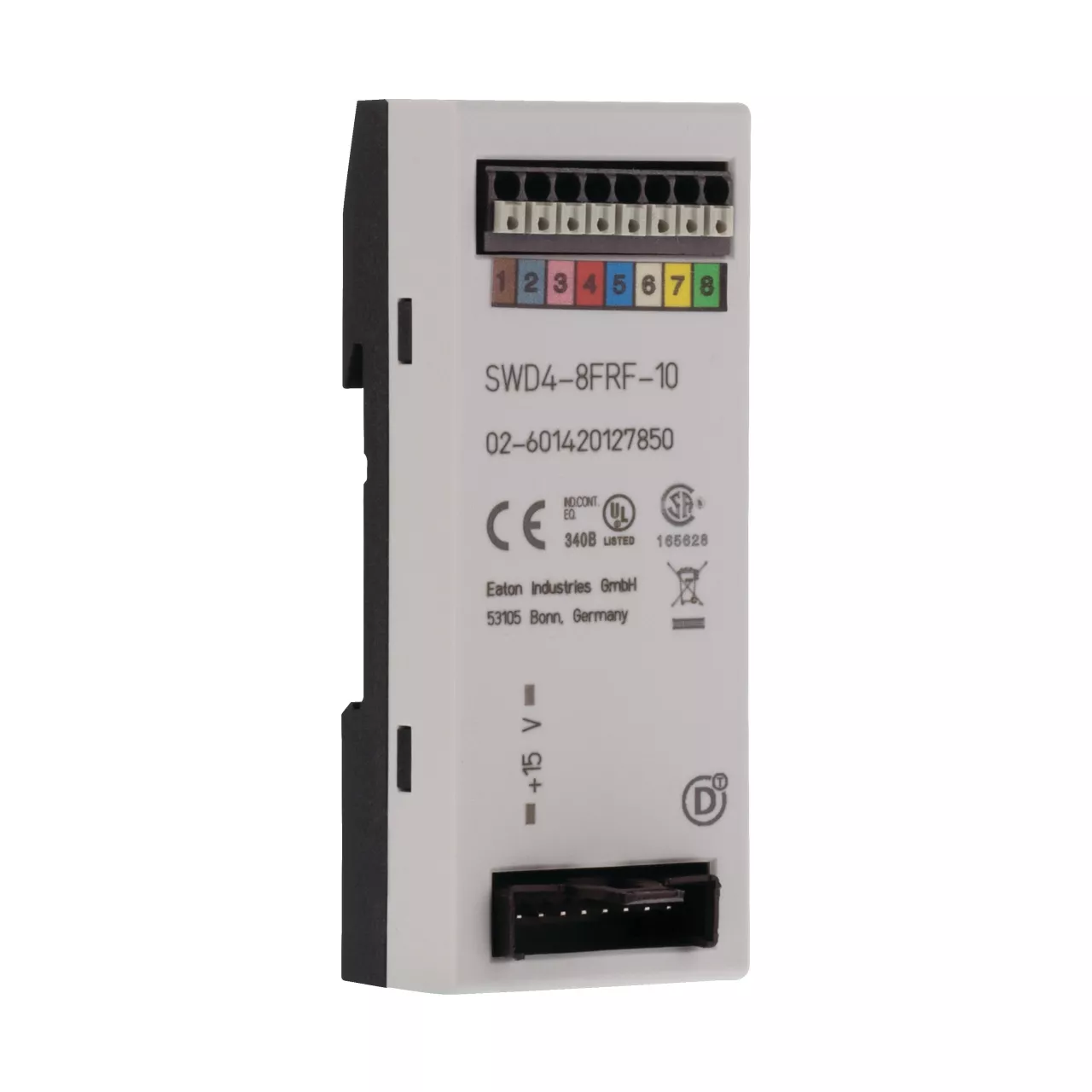 Adapter przewodu SmartWire-DT, stanowi przejście między kablem taśmowym SWD4-LF SWD a przewodem okrągłym SWD4-...LR8-24, podłączenie kabli taśmowych SWD poprzez 8-biegunowe kable płaskie SWD4-8MF2