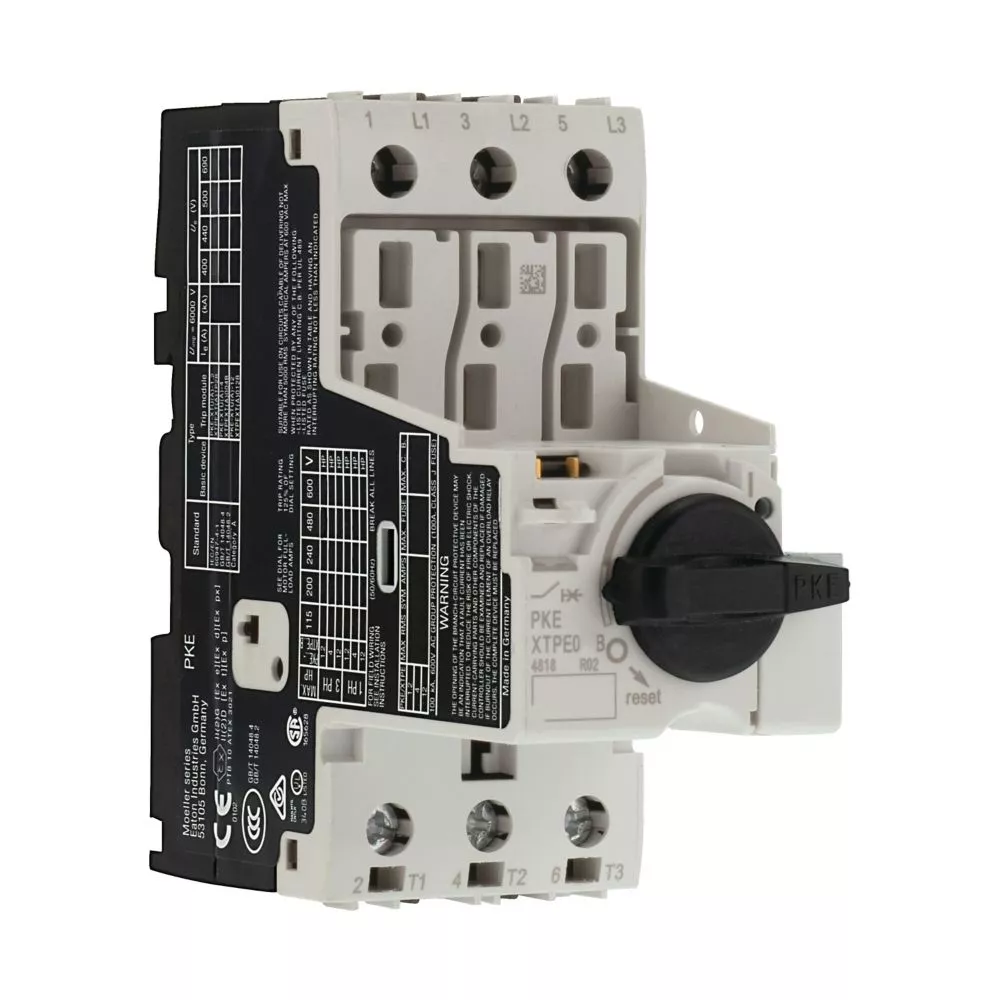 Grundgerät Motorschutzschalter, Trennerfunktion, Werkzeuglos erweiterbar mit elektronischen Steuergeräten PKE-XTU... für Motorschutz. Erweiterbar mit Hilfsschaltern, Spannungsauslöser, Strombegrenzer, Türkupplungsgriffen. Weltmarktgerät