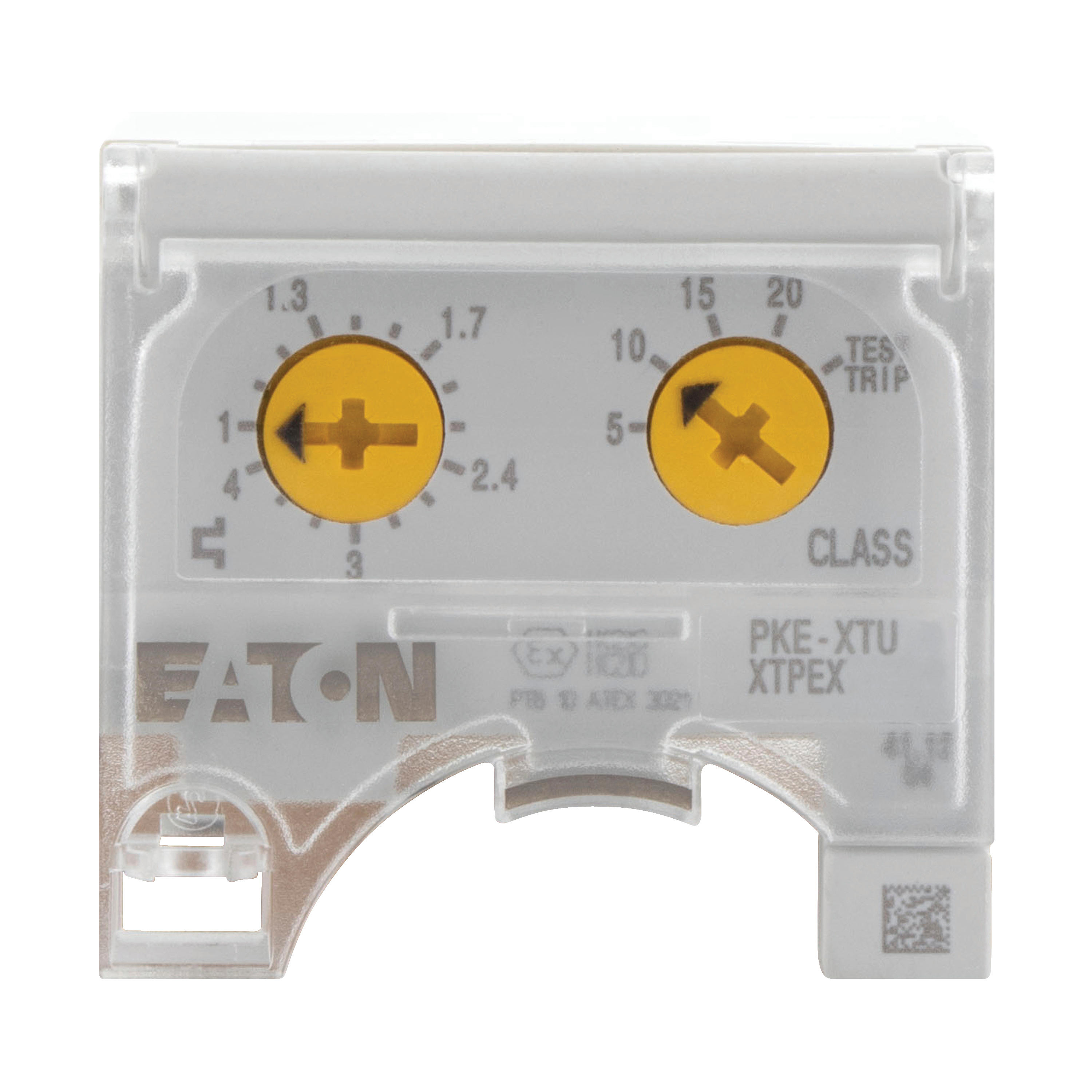 Elektronisches Steuergerät für Motorschutz gemäß IEC60947-4-1 für Grundgerät PKE12/PKE32, elektronischer Weitbereichsüberlastschutz (4:1), Phasenausfall- und Unsymmetrieschutz, Einstellbare Auslöseklasse. Weltmarktgerät, ATEX-Zulassung