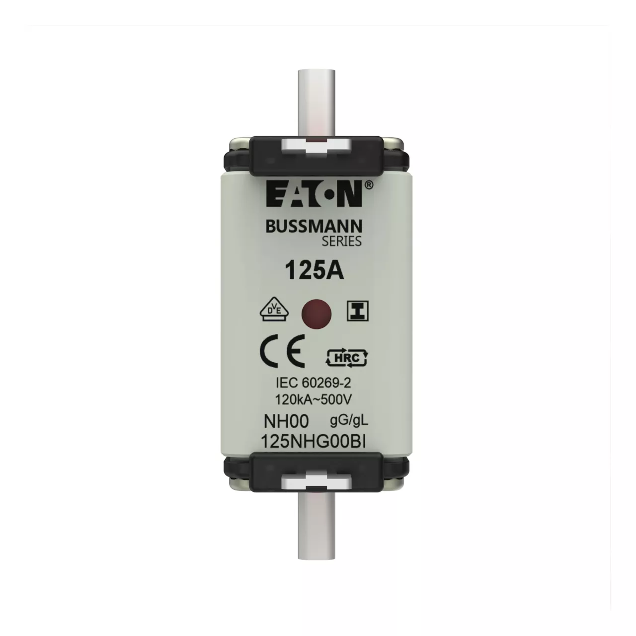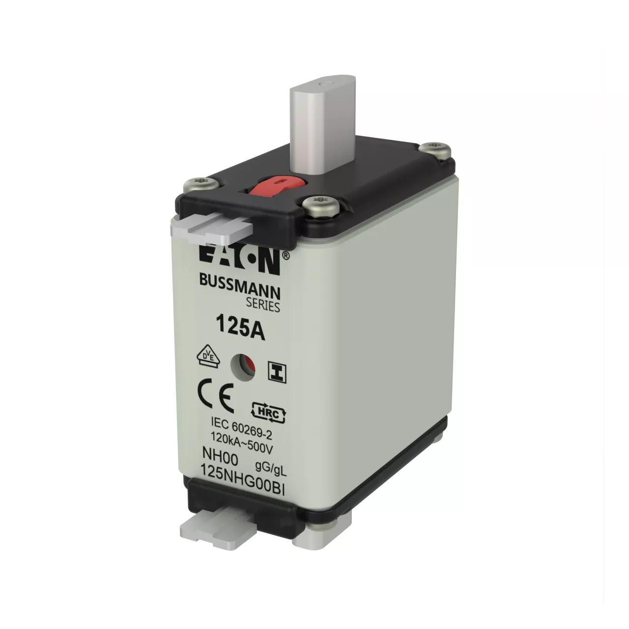 zekering, zekeringelement, Lage spanning, 125 A, AC 500 V, NH00, gL/gG, IEC, dubbel (combinatie-) meldersysteem, vierkant huis met mescontacten, geïsoleerde grepen, IEC 60269-2 zekeringsysteem A, DIN 43620, VDE 0636-2, uitschakelvermogen 120 kA