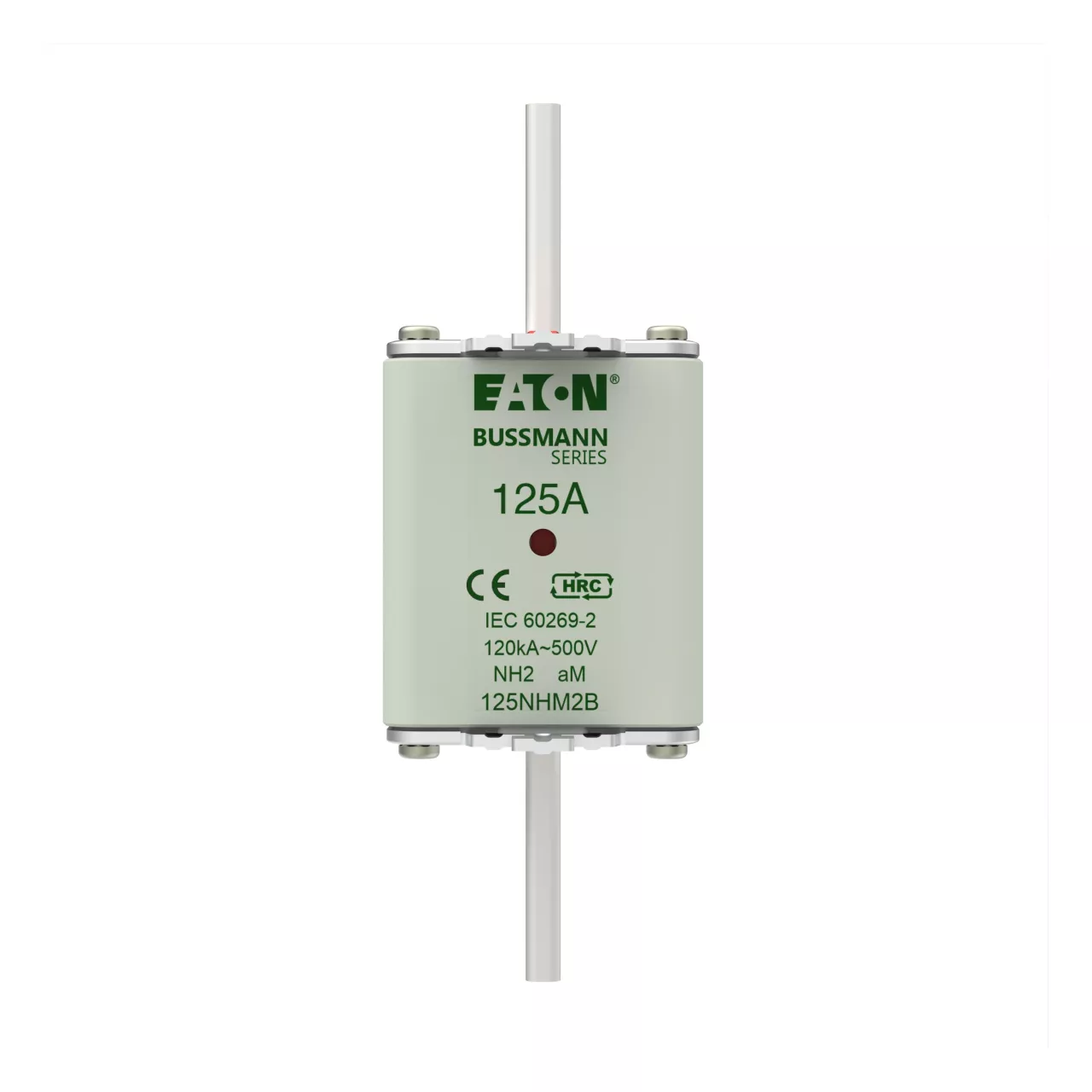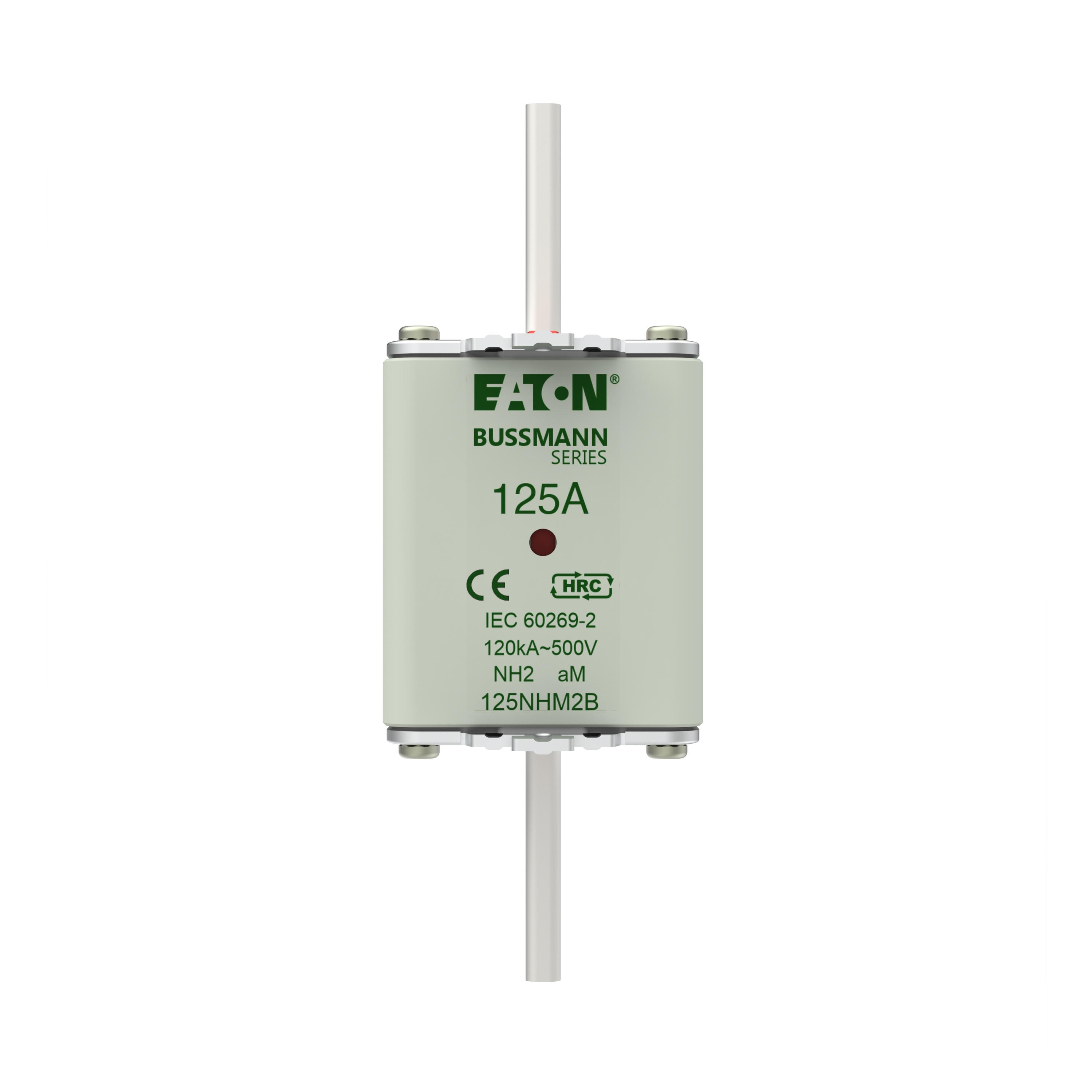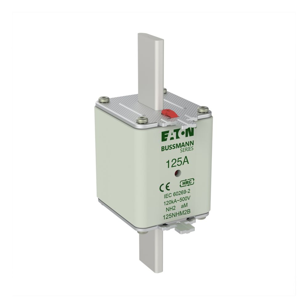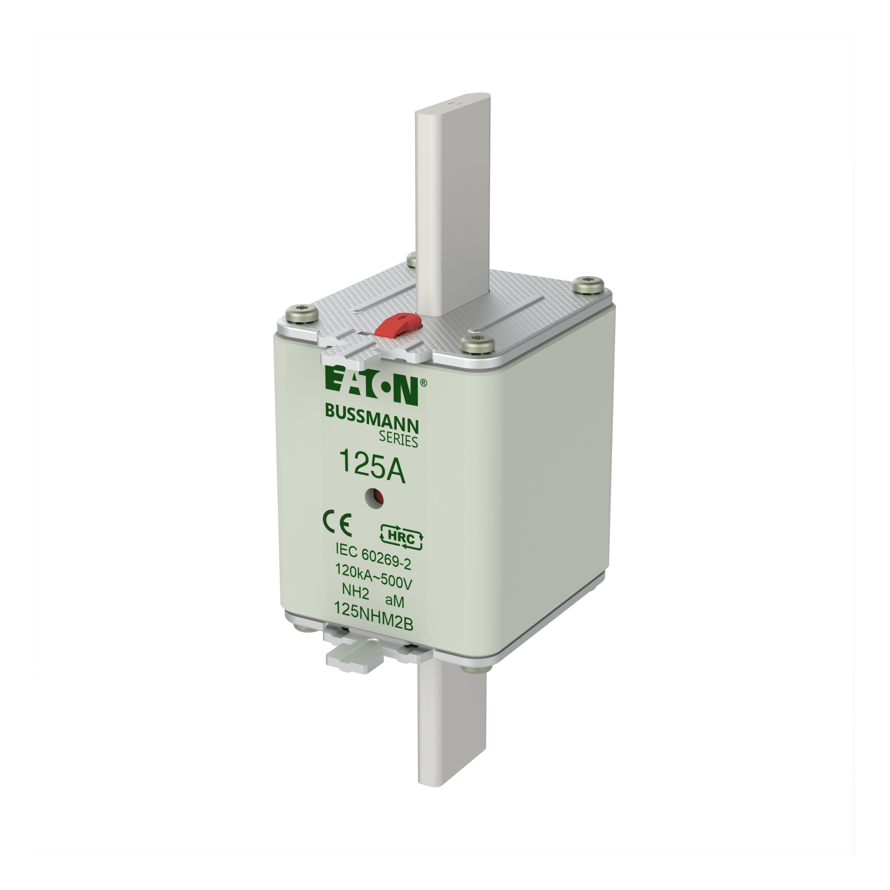Bezpiecznik, Wkładka bezpiecznikowa, Niskie napięcie, 125 A, AC 500 V, NH2, aM, IEC, sygnalizator podwójny, korpus kwadratowy ze stykami nożowymi, ruchome uchwyty, IEC 60269-2 układ bezpiecznikowy A, DIN 43620, VDE 0636-2, Zdolność wyłączania 120 kA