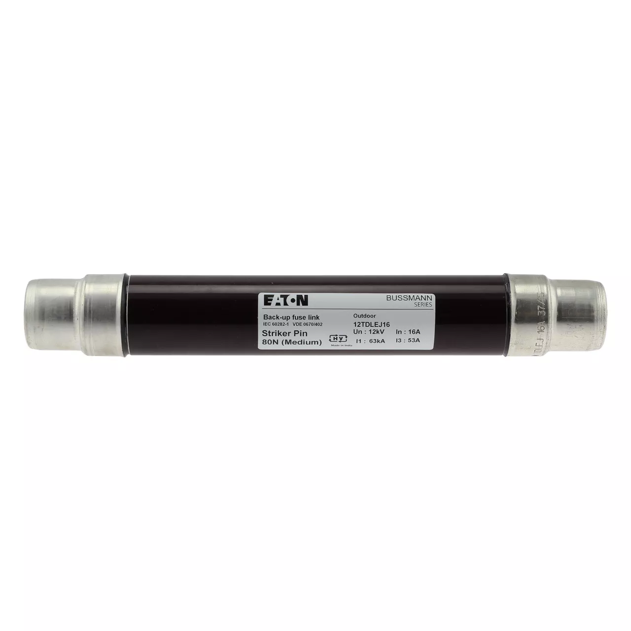 Sicherung, Sicherungseinsatz, Mittelspannung, 16 A, 12 kV AC, 2 Zoll, 51 x 292 mm, Pufferung, DIN, mit Schlagmelder, Transformatorschutz, Einsatz im Innen- oder Außenbereich, DIN 43625, VDE 0670 Teil 4, VDE 0670 Teil 402, IEC 60282-1, Ausschaltvermögen 63 kA