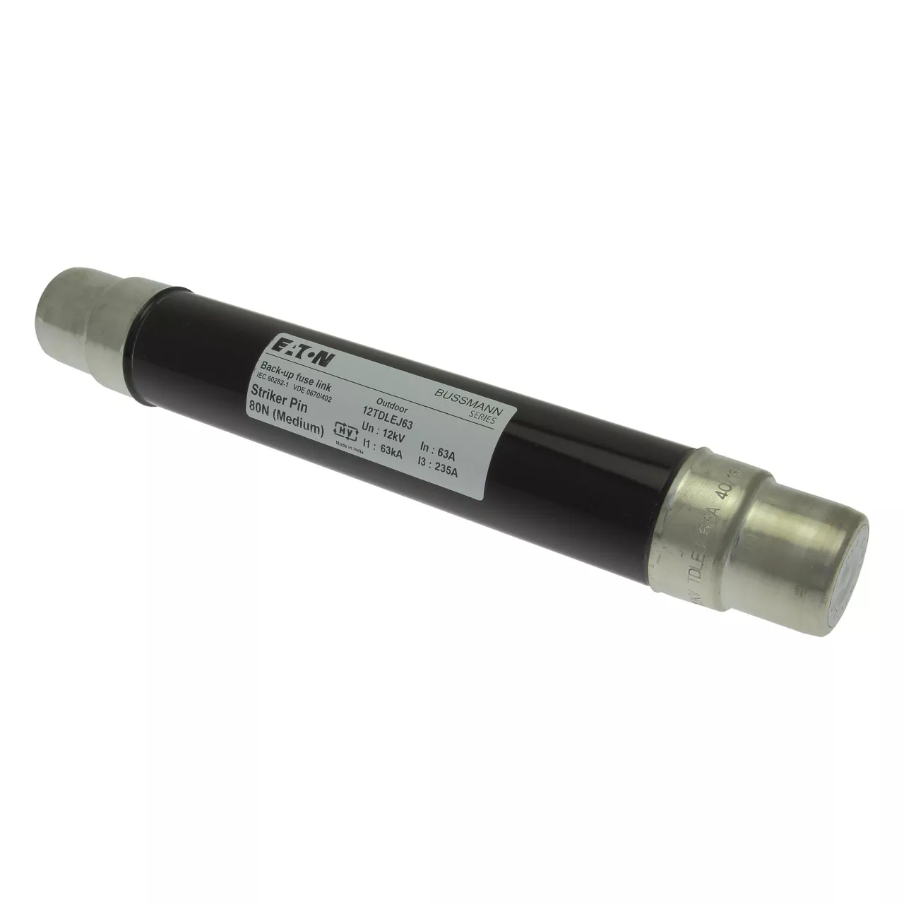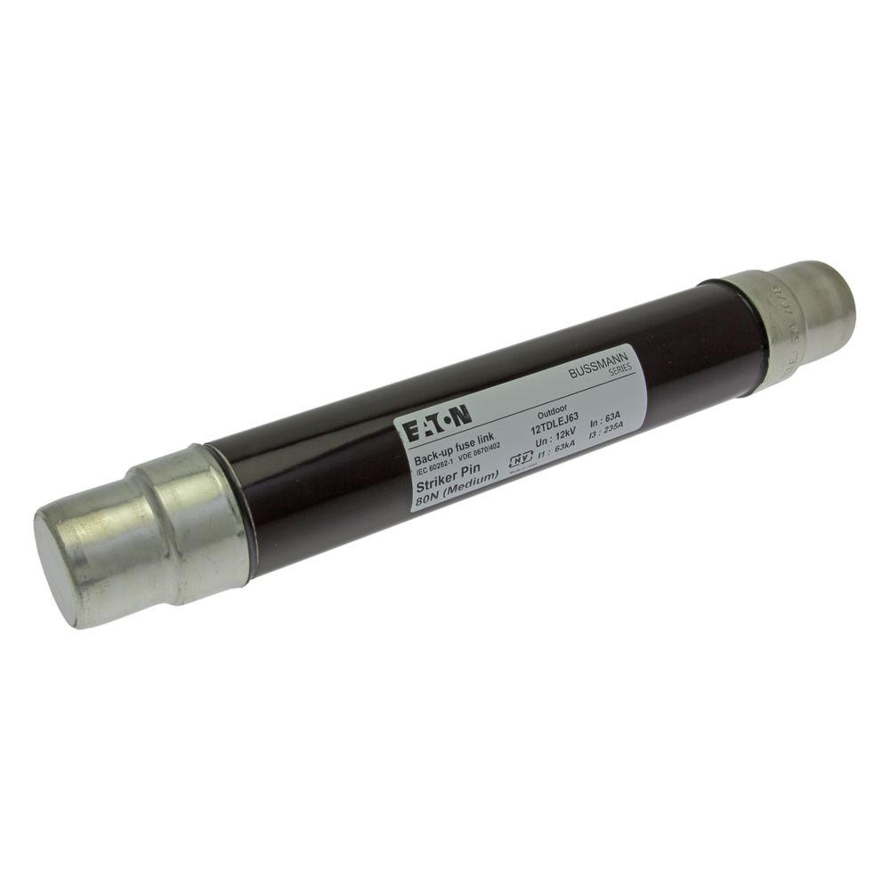 Sicherung, Sicherungseinsatz, Mittelspannung, 63 A, 12 kV AC, 2 Zoll, 51 x 292 mm, Pufferung, DIN, mit Schlagmelder, Transformatorschutz, Einsatz im Innen- oder Außenbereich, DIN 43625, VDE 0670 Teil 4, VDE 0670 Teil 402, IEC 60282-1, Ausschaltvermögen 63 kA