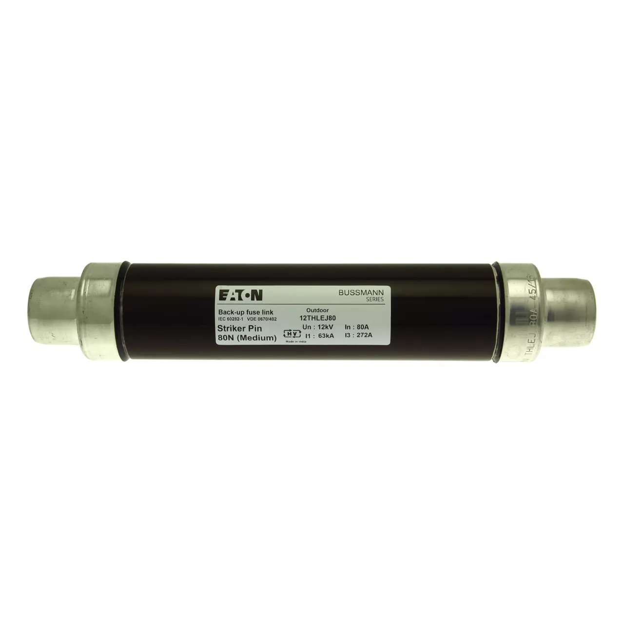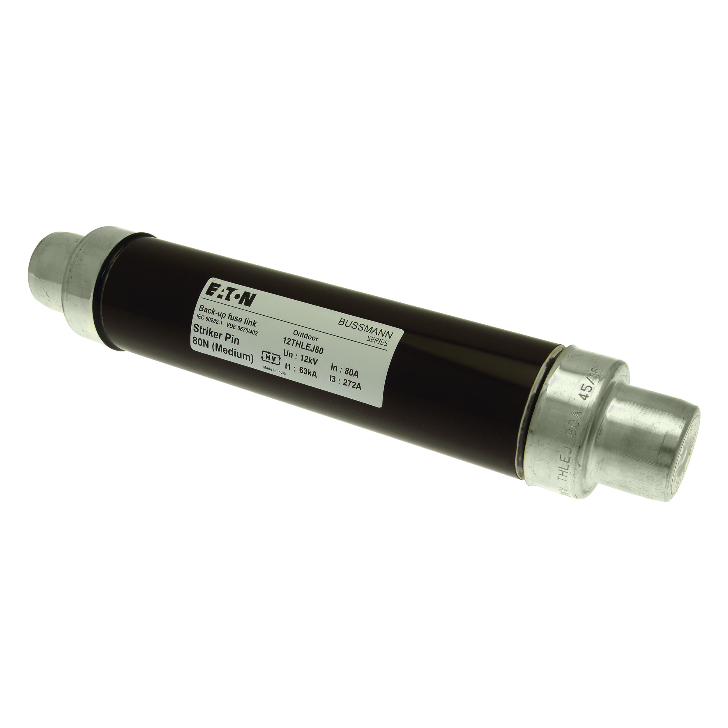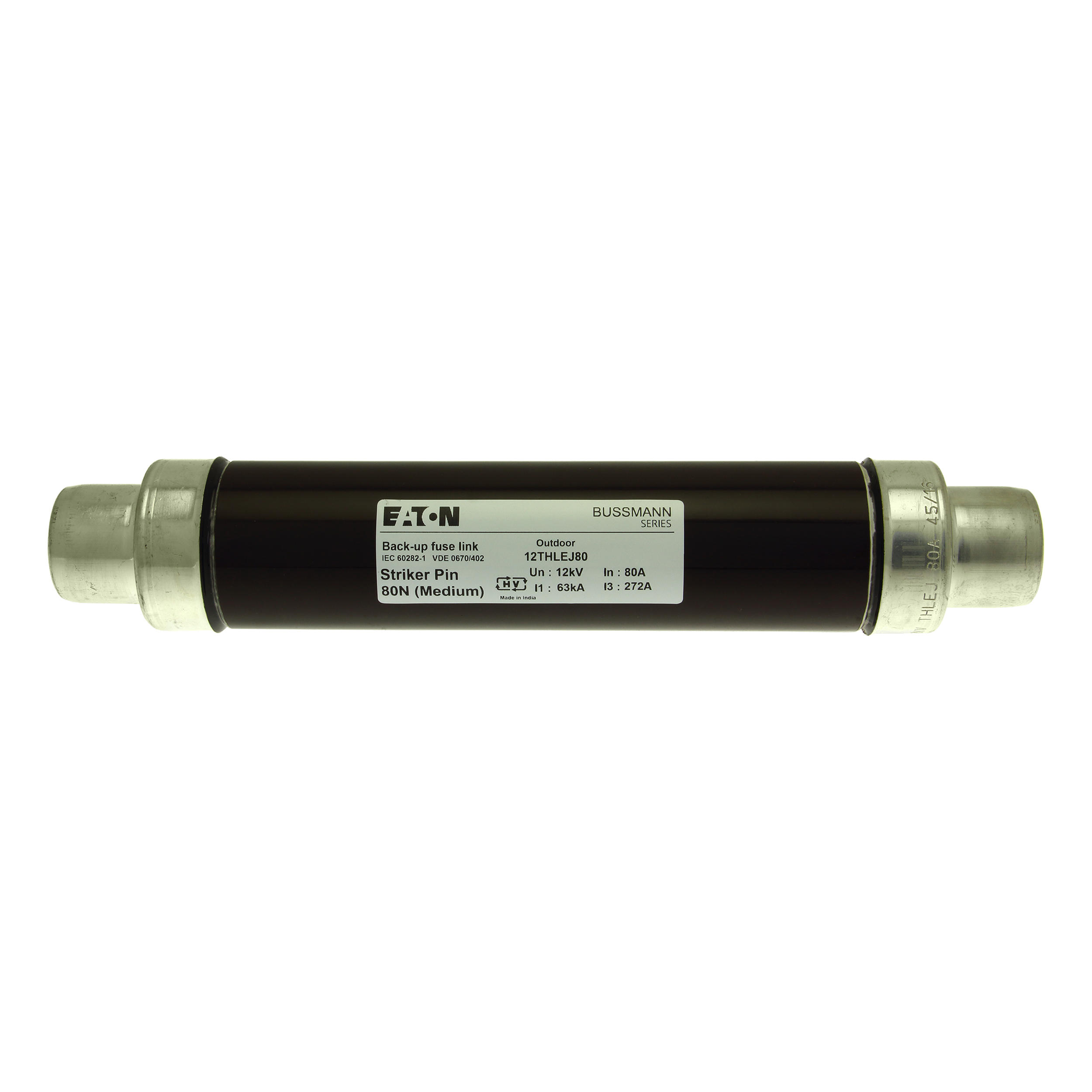 Sicherung, Sicherungseinsatz, Mittelspannung, 80 A, 12 kV AC, 2,5 Zoll, 64 x 292 mm, Pufferung, DIN, mit Schlagmelder, Transformatorschutz, Einsatz im Innen- oder Außenbereich, DIN 43625, VDE 0670 Teil 4, VDE 0670 Teil 402, IEC 60282-1, Ausschaltvermögen 63 kA