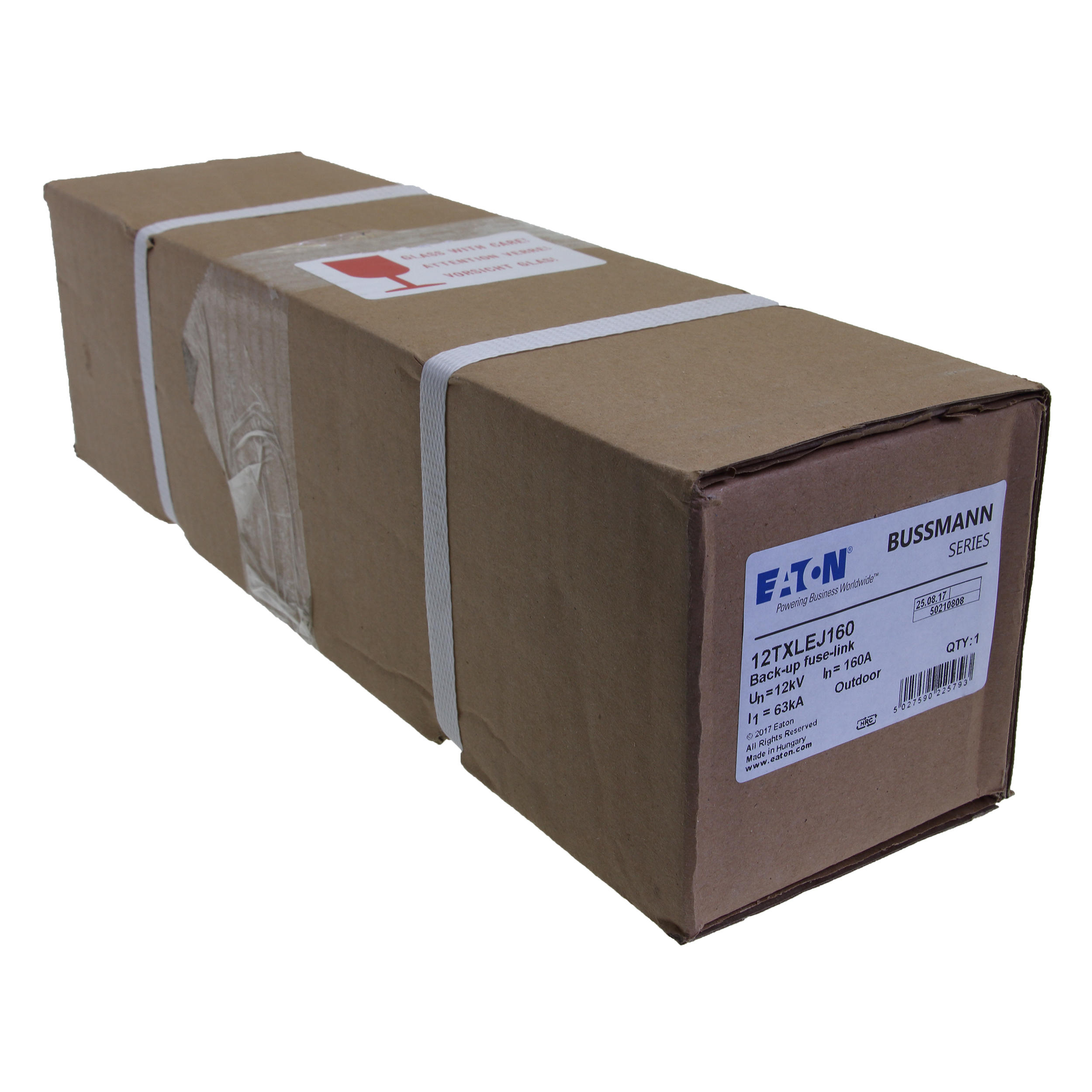 Sicherung, Sicherungseinsatz, Mittelspannung, 160 A, 12 kV AC, 3,5 Zoll, 88 x 292 mm, Pufferung, DIN, mit Schlagmelder, Transformatorschutz, Einsatz im Innen- oder Außenbereich, DIN 43625, VDE 0670 Teil 4, IEC 60282-1, Ausschaltvermögen 63 kA