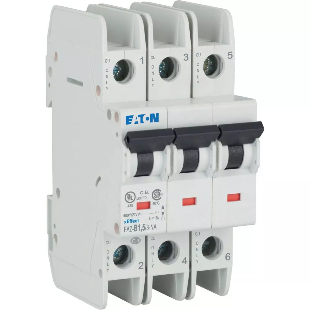 Installatieautomaat (MCB), FAZ-NA, 3-polig, afschakelkarakteristiek: B, nominale stroom In: 1,5 A, Schakelapparatuur voor export naar Noord-Amerika (UL-gecertificeerd)