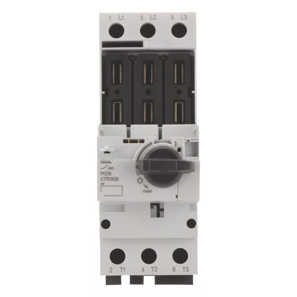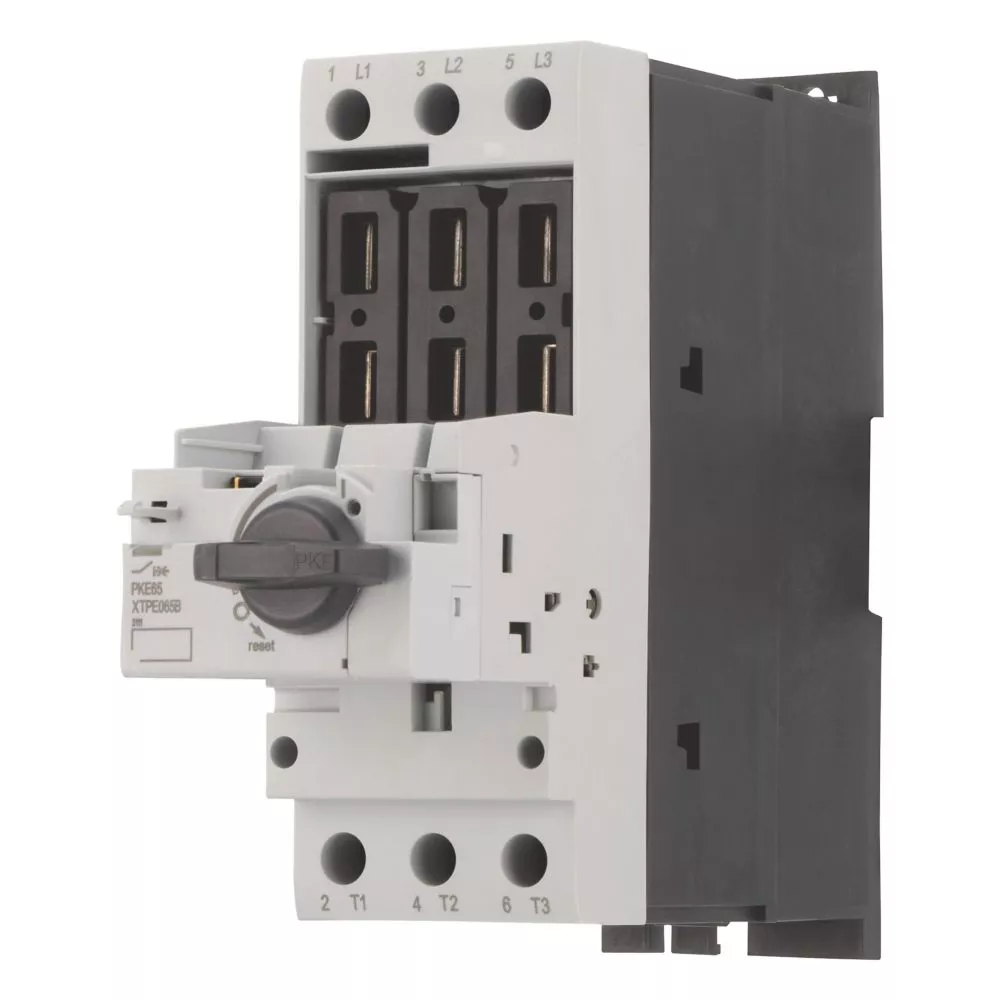 Grundgerät Motorschutzschalter, Trennerfunktion, Werkzeuglos erweiterbar mit elektronischen Steuergeräten PKE-XTU... für Motorschutz oder System-/Kabelschutz. Erweiterbar mit Hilfsschaltern, Spannungsauslöser, Strombegrenzer Türkupplungsgriffe.