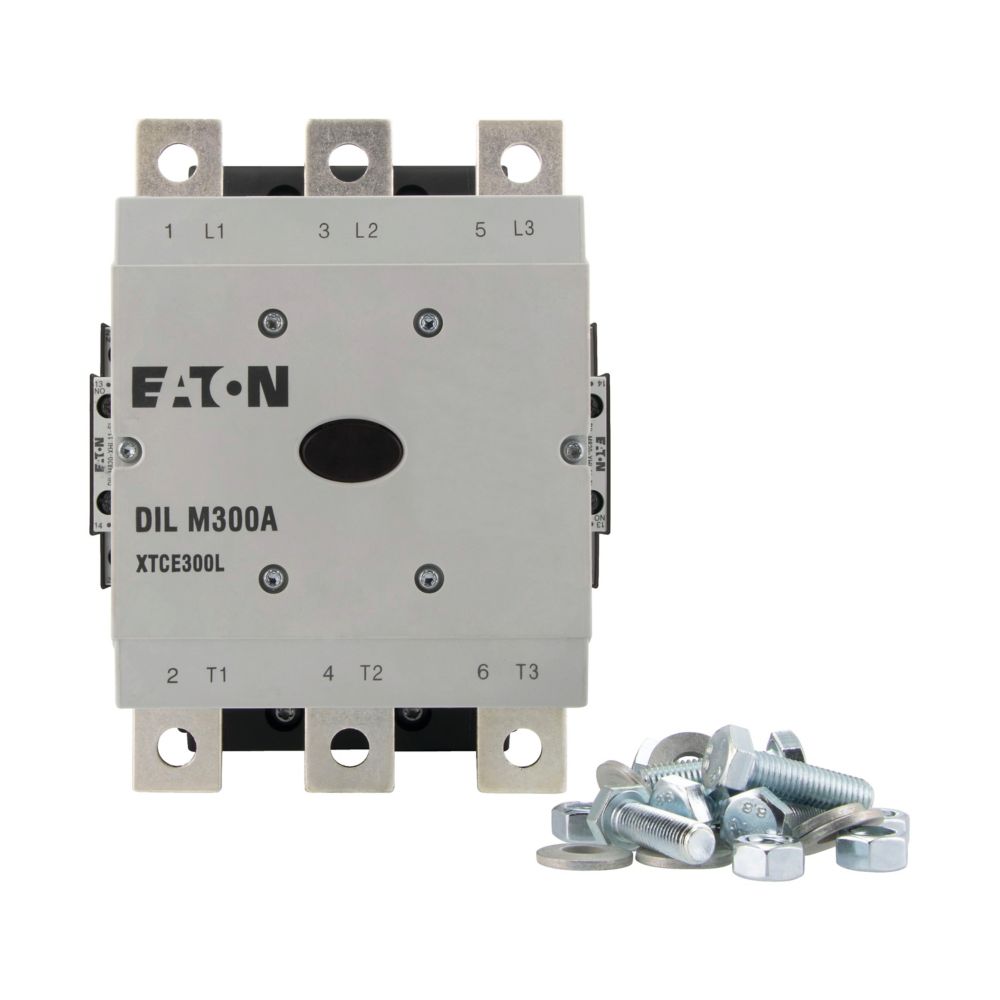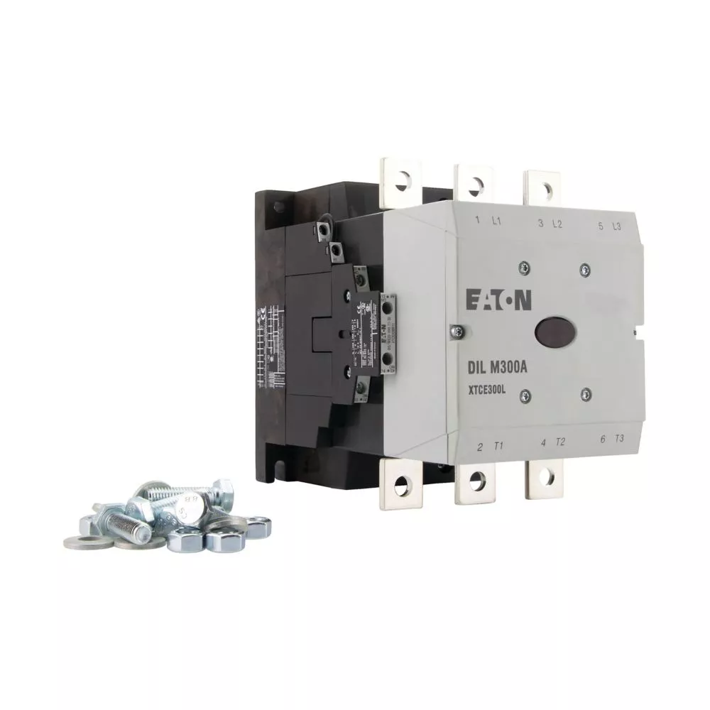 Stycznik, Zastosowanie: Styczniki do silników, Aparaty komfortowe powyżej 170 A, kategoria użytkowa: AC-1: Obciążenia nieindukcyjne lub obciążenia o małej indukcyjności, piece oporowe, NAC-3: Standardowe silniki indukcyjne AC: rozruch, wyłączanie w trakcie pracy, AC-4: Standardowe silniki indukcyjne AC: rozruch, hamowanie przeciwprądowe, nawrót, impulsowanie, Sposób podłączenia: Podłączenie na śrubę, Znamionowy prąd pracy AC-3, 380 V 400 V: Ie= 300 A, Znamionowy prąd pracy AC-1 Konwencjonalny prąd termiczny, 3-biegunowy, 50–60 Hz Bez obudowy przy 40°C: Ith =Ie= 490 A, w obudowie: Ith = 315 A, Znamionowy prąd pracy AC-1 Konwencjonalny prąd termiczny