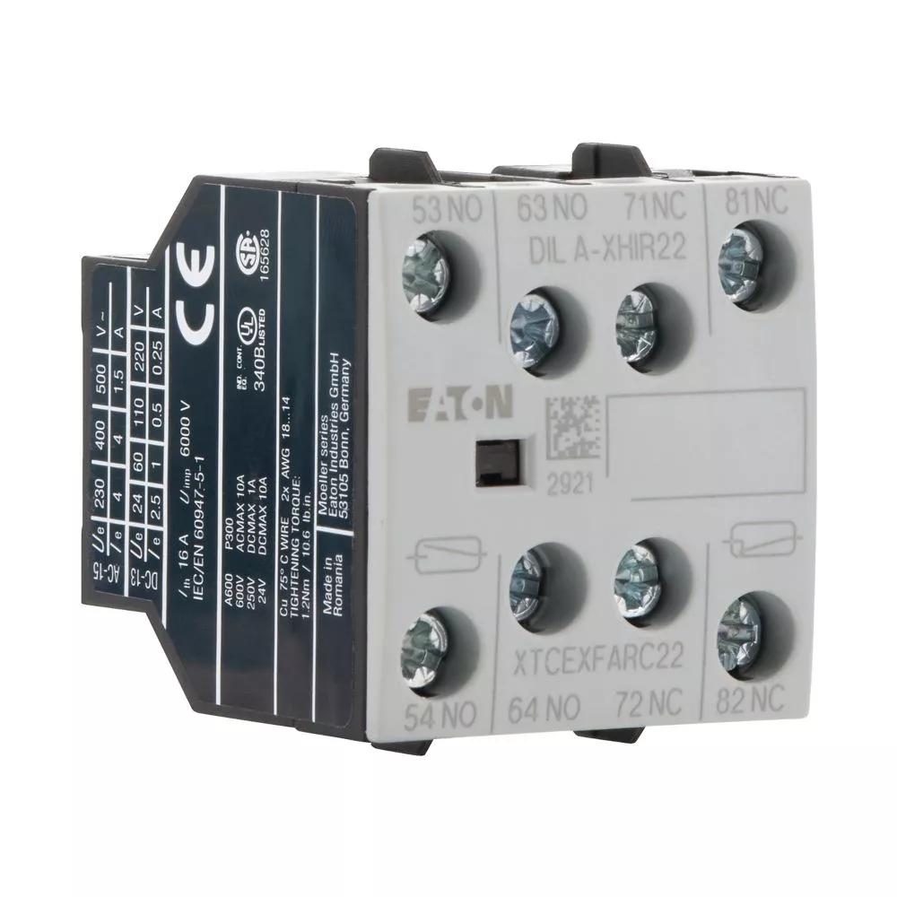 DILA-XHIR22 Moduł przednich styków pomocniczych, 2NO+2NC, Ith= 16 A, Zaciski śrubowe , Pasuje do DILA, DILM7 - DILM38, kompatybilny z elektroniką