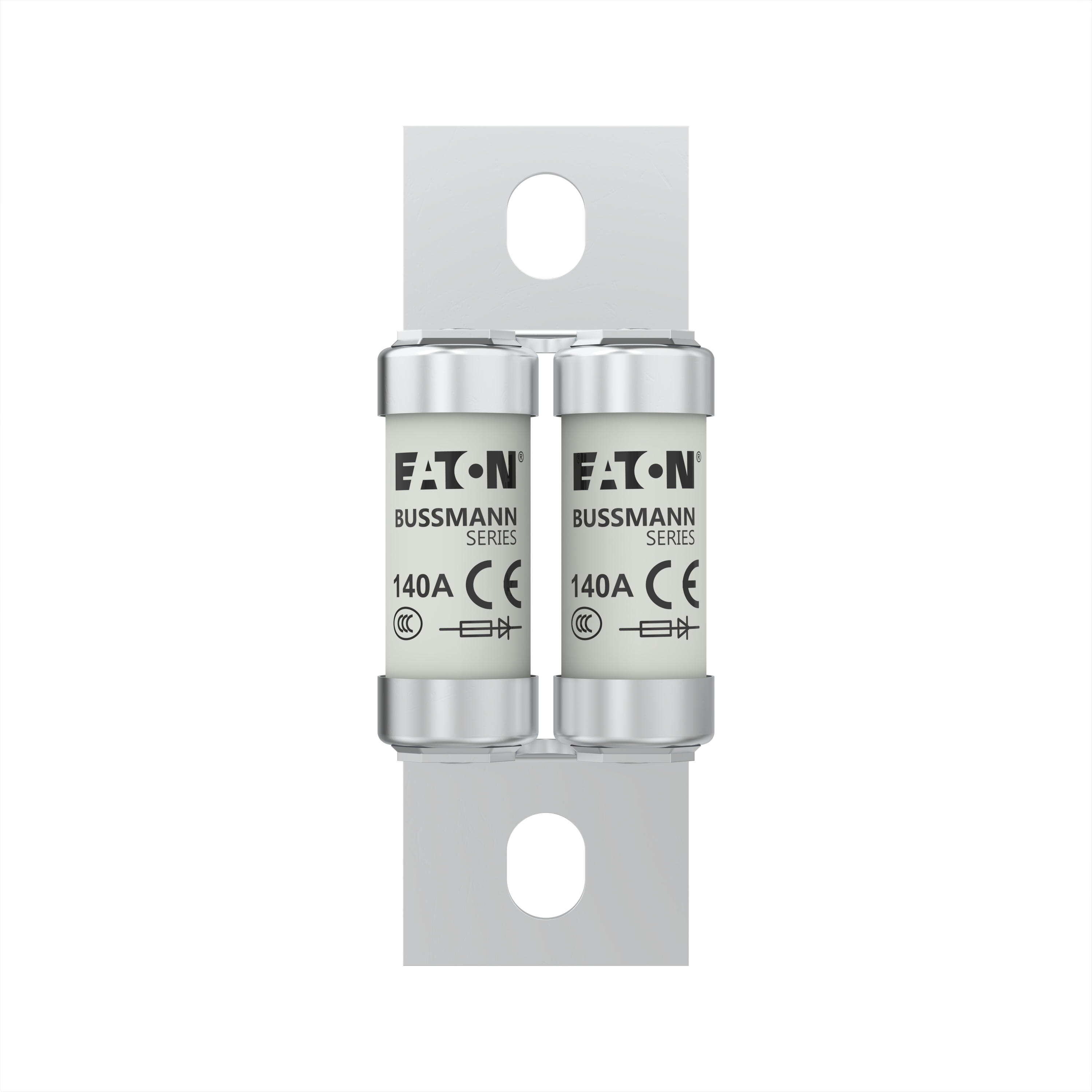 Sicherung, Sicherungseinsatz, superflink, 140 A, 690 V AC, 500 V DC, BS88, 37 x 94 mm, aR, BS, gekröpfte verschraubte Anschlussfahnen (Doppelzylinder), Gemeinsamer DC-Bus Schutz, Gleichstromantriebe, Leistungsumrichter/Gleichrichter und Anlasser mit reduzierter Spannung, BS88-4, IEC 60269-4, Ausschaltvermögen 200 kA, Optionale Zusatzausrüstung Sicherungshalter BH-1132