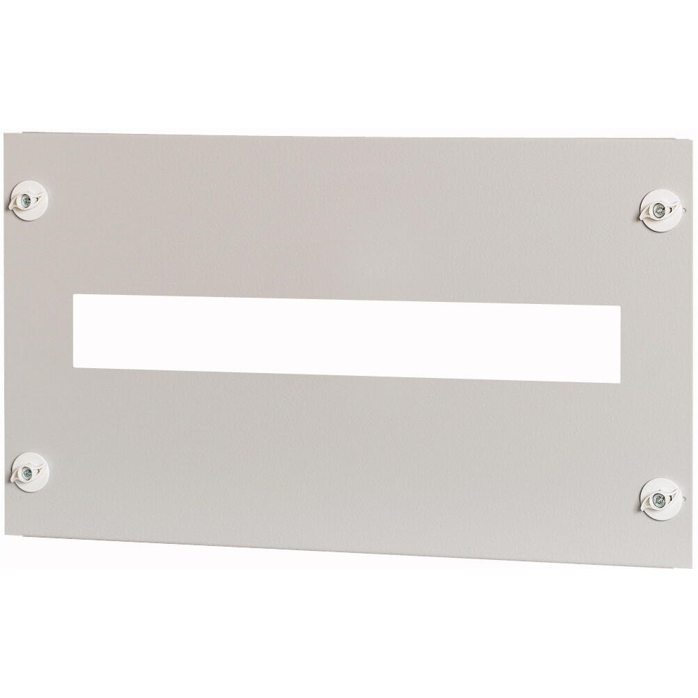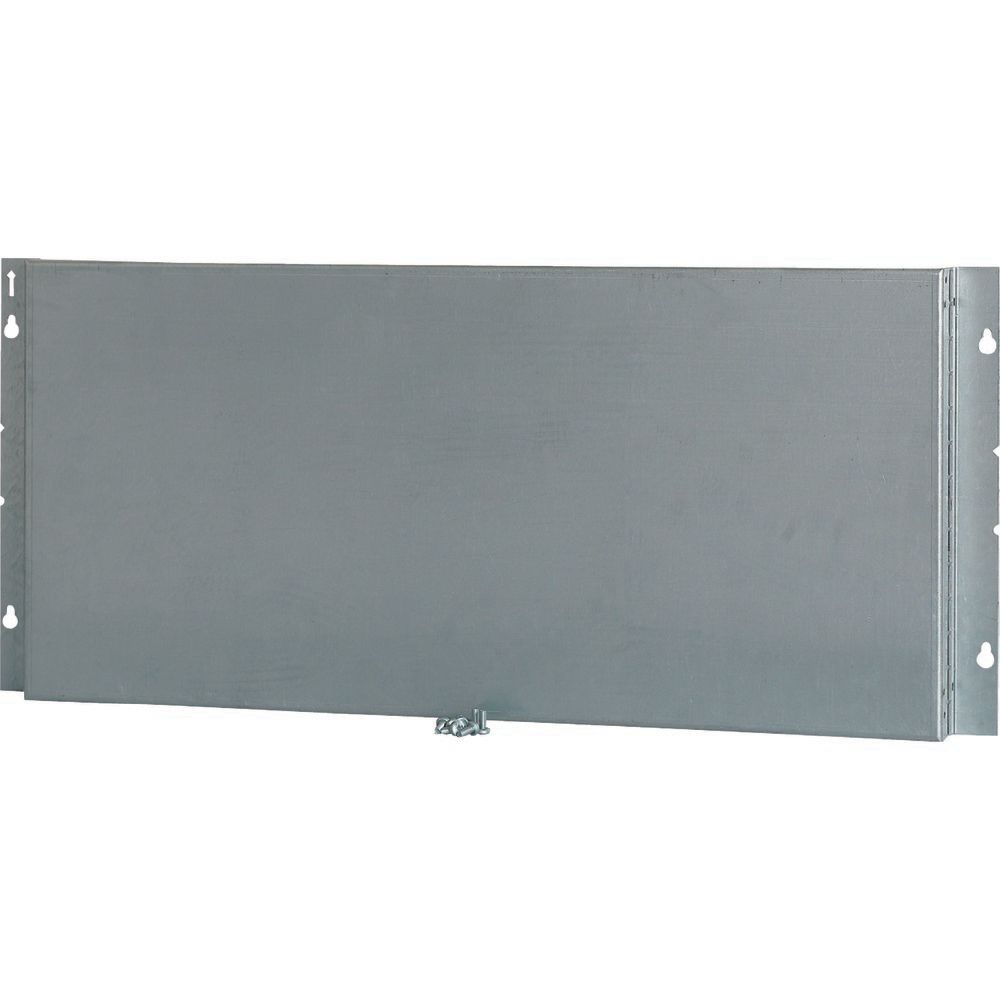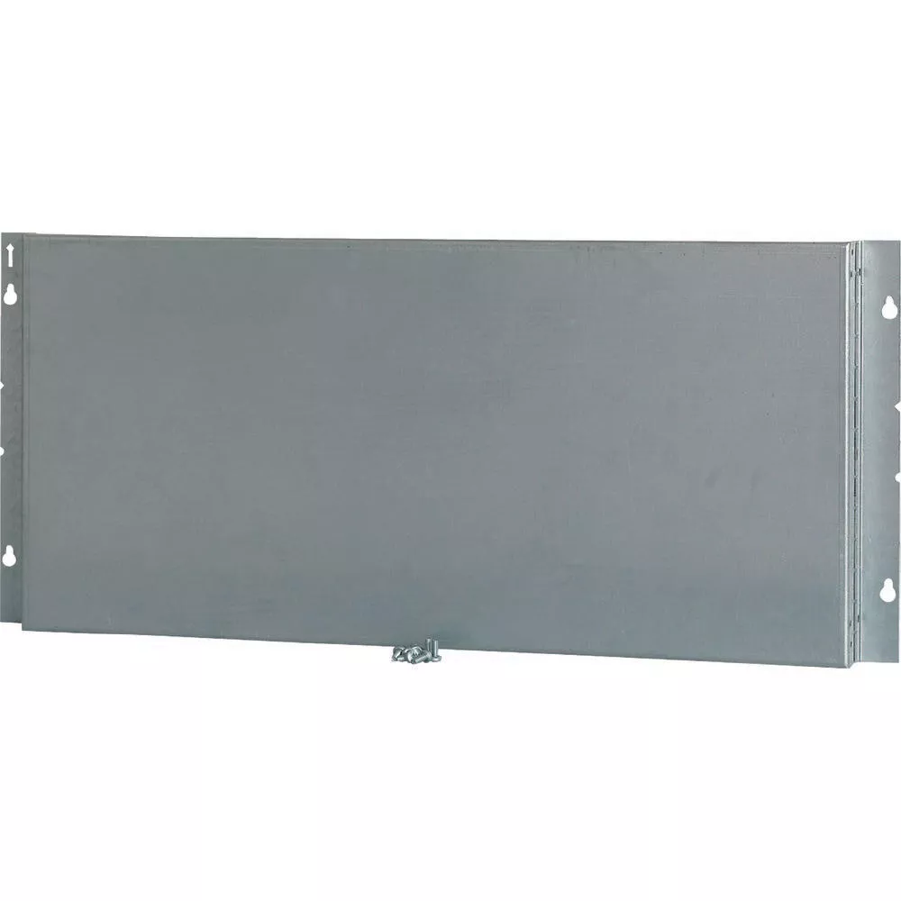 Montagesatz BPZ-BZM1/2-...-MV für Mehrfachmontage von BZM, Breite 800 mm, Höhe 300 mm, zur Montage mehrerer BZM-Einheiten in vertikaler Position. Frontplatte aus Stahlblech, pulverbeschichtet, RAL 7035, Stahlblech-Montageplatte (2 mm), verzinkt. Metallfrontplatten mit elektrischem Kontakt mit Gehäuse, geeignet für Aufbaugehäuse oder Standverteiler. im Lieferumfang enthalten: 1 Montageplatte, 1 Frontschild, diverses Montagezubehör