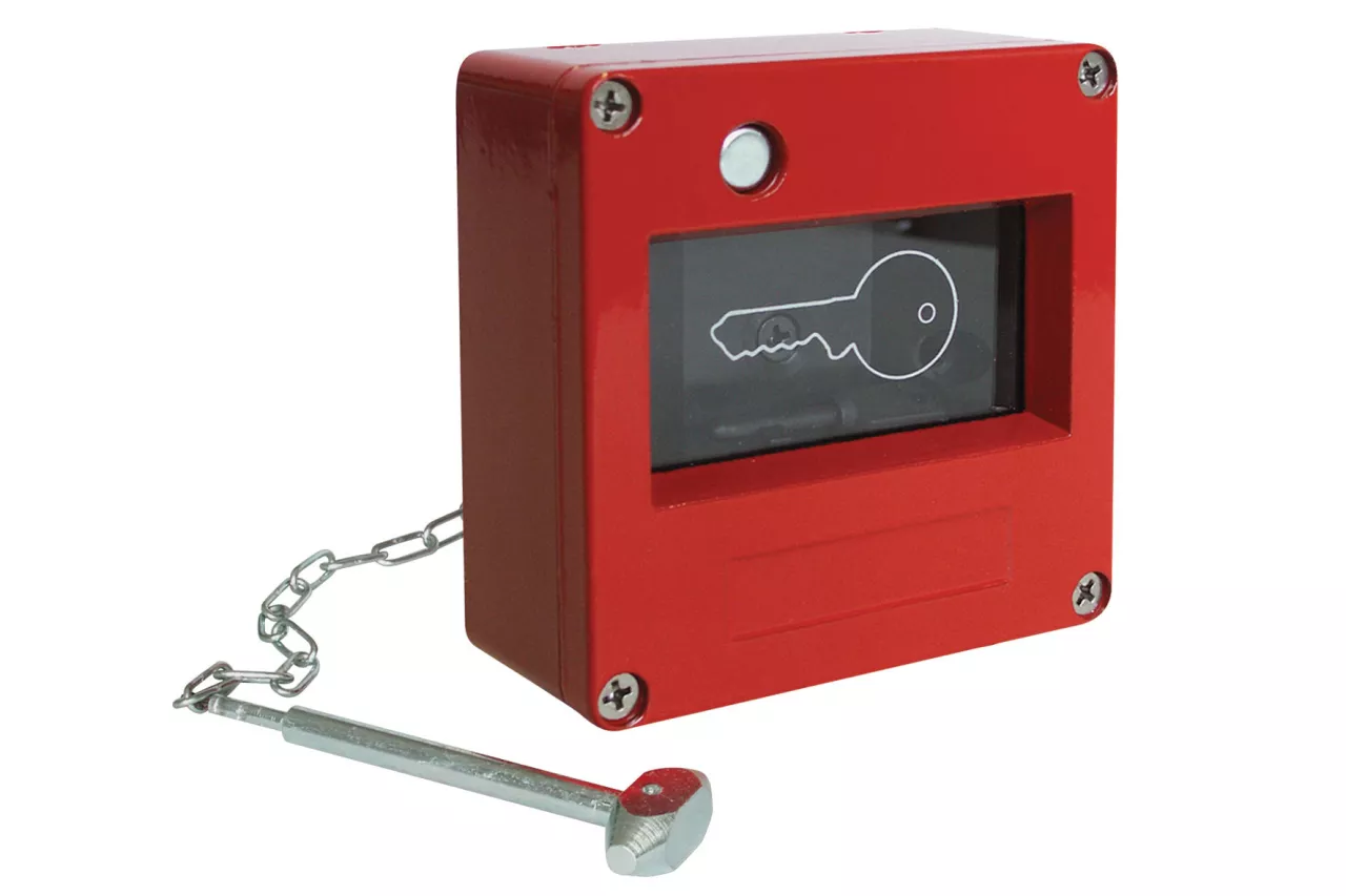 1493-1512 Skrzynka na klucz ewakuacyjny ze zbijakiem, czerwona, dodatkowy zamek