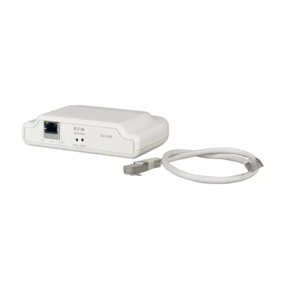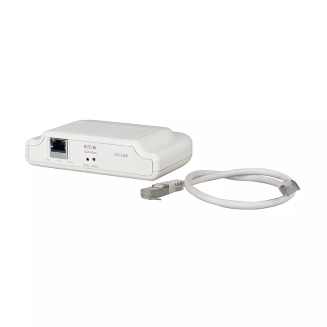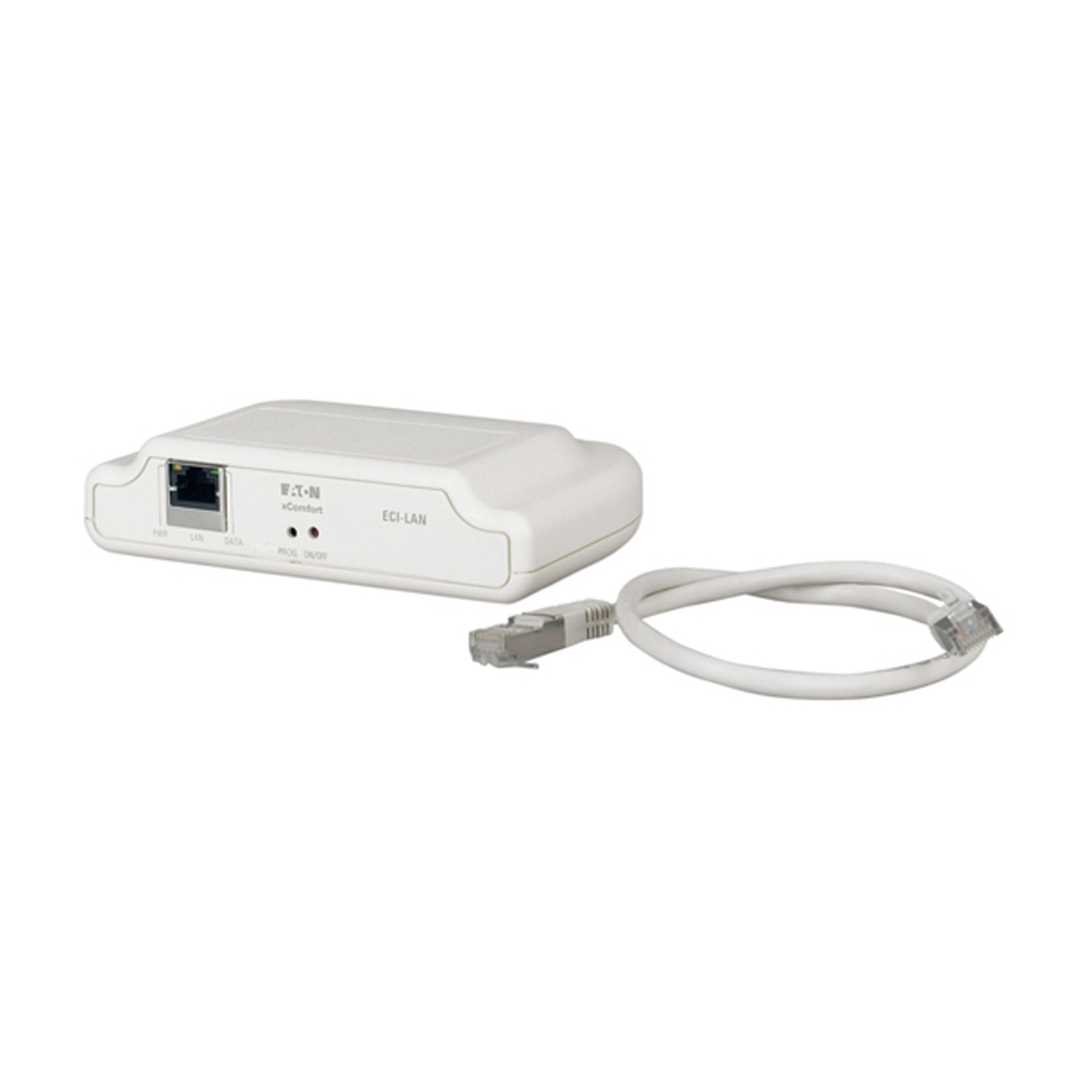 De Ethernet communicatie interface wordt gebruikt voor communicatie in een XComfort systeem met groot netwerk. De ECI’s zijn via een LAN-netwerk met elkaar verbonden (bestaand of extra LAN-netwerk). De ECI communiceert verder alles met de xComfort radiotechnologie. Afhankelijk van de toepassing, kunnen de ECI’s worden geconfigureerd als LAN-router of gebiedsknoop. Als xComfort-routing niet mogelijk is kan LAN-routering worden gebruikt. Als individuele niveaus, waarin xComfort wordt gebruikt, via LAN/WAN met elkaar in een netwerk zijn verbonden, dan kan de ECI ook worden gebruikt als gebieds-node. MFR 2.0 of hoger is nodig voor de ingebruikname.